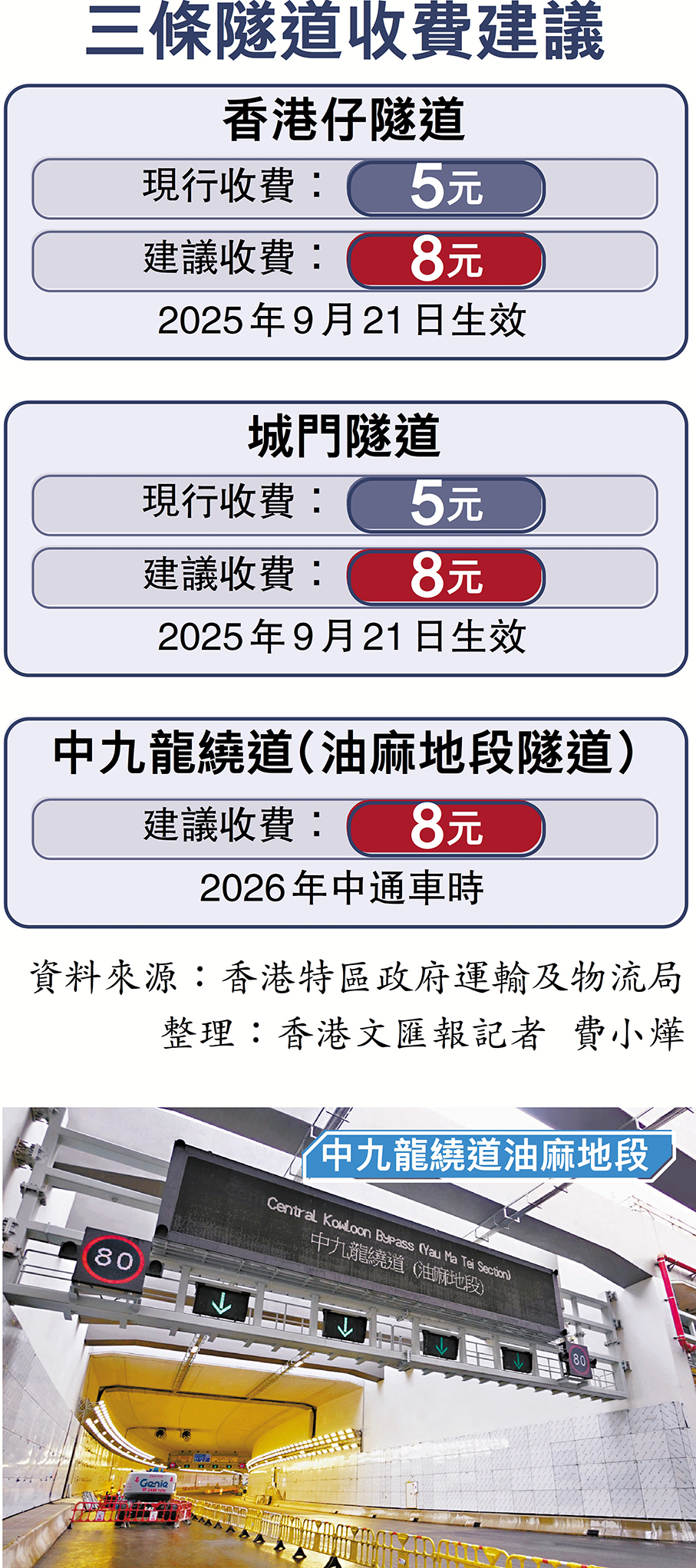 較原建議下調2元 香港仔城門兩隧道9·21亦加至8元