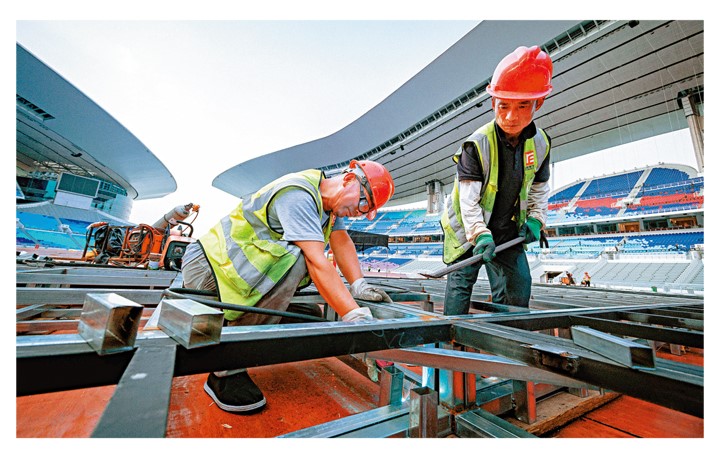 圖說:廣東奧體中心開幕式現場的硬件搭設工作正在加速推進。 受訪者供圖