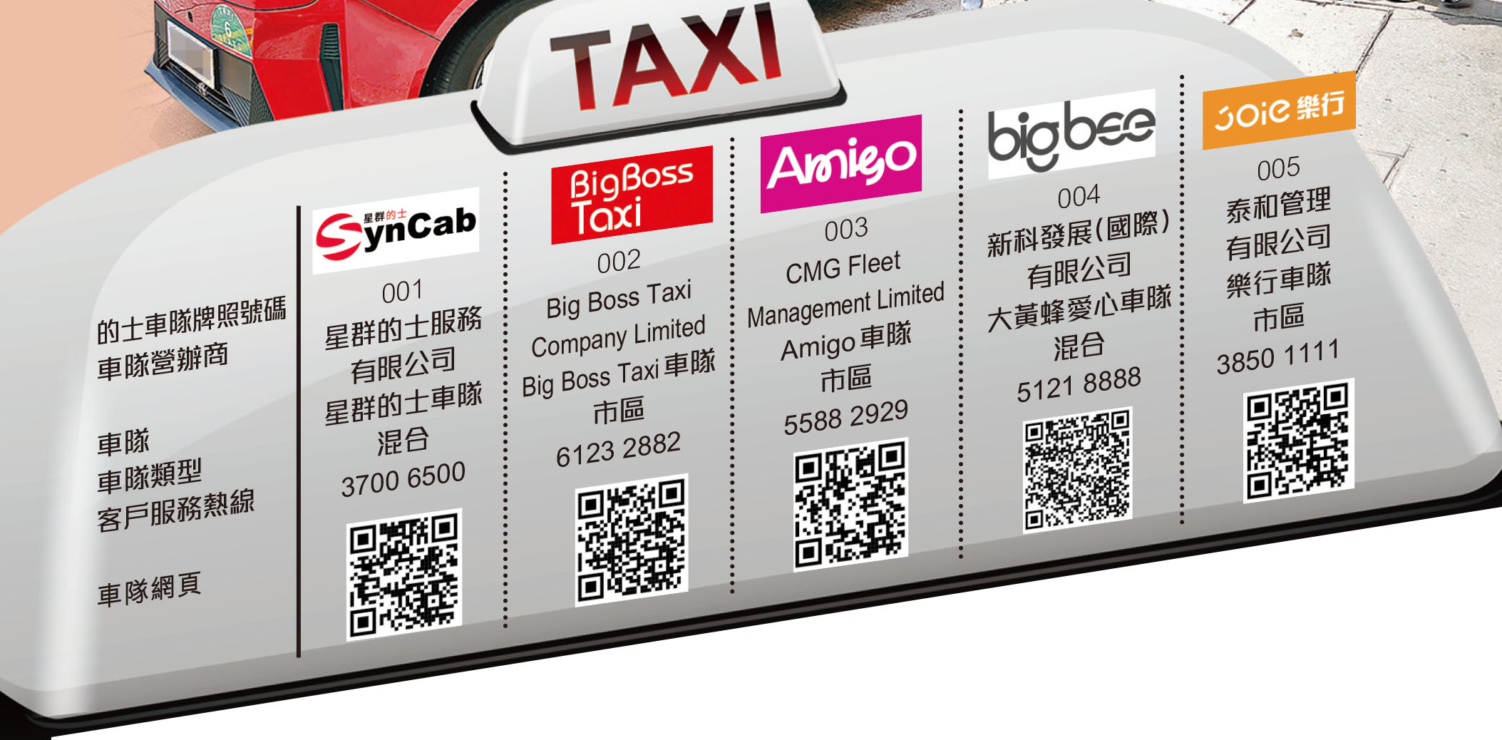 運輸署發言人表示,4支獲批車隊包括:Big Boss Taxi Company Limited營辦的Big Boss Taxi車隊(市區型、牌照號碼002);CMG Fleet Management Limited營辦的Amigo車隊(市區型、牌照號碼003);新科發展(國際)有限公司營辦的大黃蜂愛心車隊(混合型、牌照號碼004);以及泰和管理有限公司營辦的樂行車隊(市區型、牌照號碼005)。所有車隊的士須於車身前後展示識別牌,並於擋風玻璃展示證明書,便利乘客辨認。連同早在本月14日獲發牌、忠誠車行營辦的星群,目前共有5支的士車隊正式投入服務。