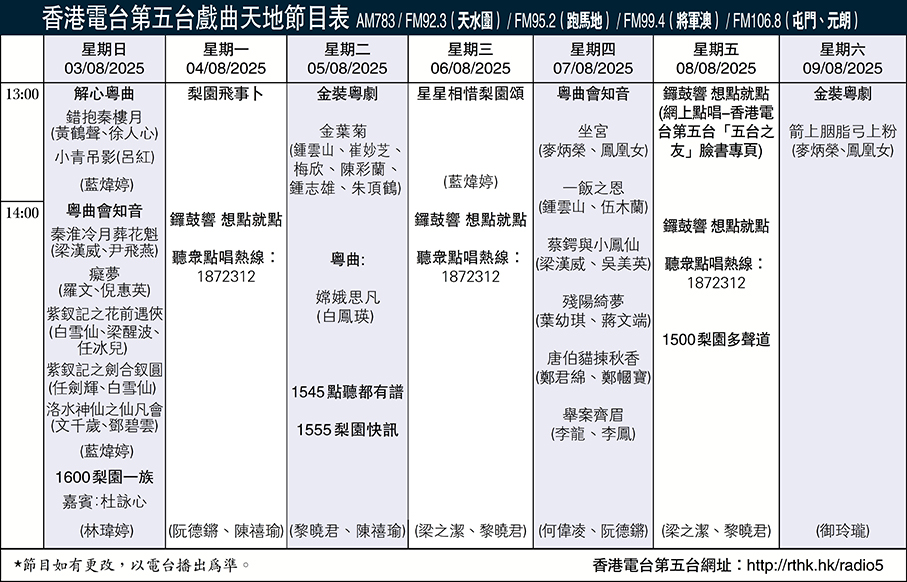 香港電台第五台戲曲天地節目表