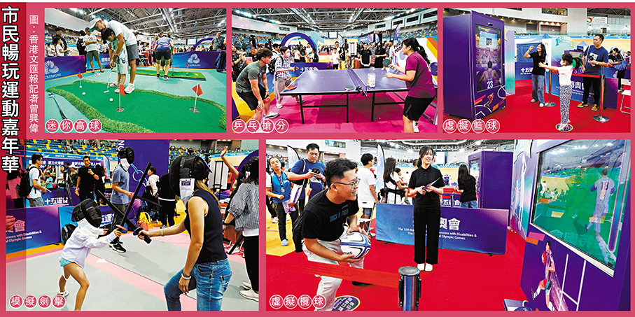 倒數活動現場設運動嘉年華,包括鐵人三項、籃球、高爾夫球等,並提供環保袋、水瓶以及便攜風扇等予獲獎的入場人士。不少熱門項目排起長龍,有家長特意帶同小朋友領略劍擊運動的魅力,參與者可戴上專業頭盔和防護衣,有市民期望香港運動員在百日後的賽事中大放異彩,祝願全運會圓滿成功。