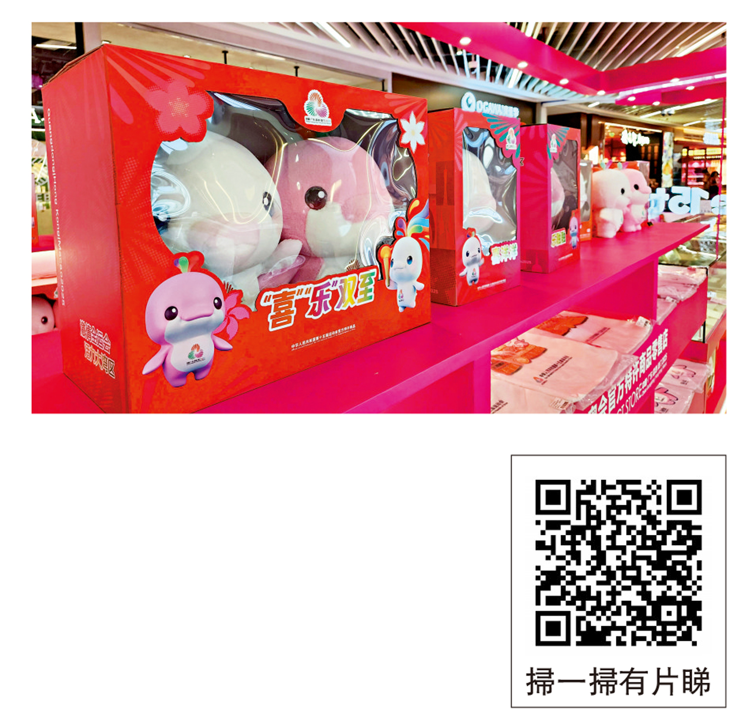 與地鐵打卡點遙相呼應的,是散落於城市各處的十五運會特許商品零售店,它們正以更貼近生活的方式讓全運元素走進市民日常。在深圳中心書城的特許店裏,30多個品類、近300個單品的全運周邊產品錯落陳列,從憨態可掬的毛絨吉祥物「喜洋洋」、「樂融融」,到工藝精湛的紀念金銀幣和融合嶺南窗花元素的紀念徽章,每一件商品都承載着全運會獨特的文化記憶。\大公報記者郭若溪、李薇、實習記者周瑜深圳報道