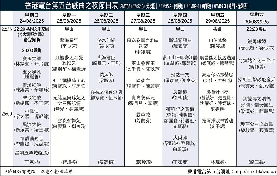 香港電台第五台戲曲之夜節目表