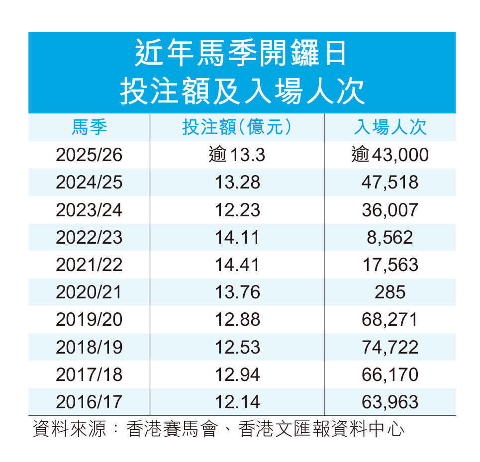 特區政府積極推動賽馬旅遊下,昨日開鑼的新馬季吸引大批本地馬迷及海內外旅客冒雨入場觀賽,更有遠至新疆來港的旅客專程入場感受氣氛。有旅客大讚體驗獨特,「這種性質的玩法(在內地)幾乎沒有。」盼感受當中樂趣;亦有澳洲旅客特意來港一睹上季香港馬王「嘉應高昇」風采,並盛讚香港賽馬無論設施或氣氛均為全球首屈一指。兩個馬場入場人數昨共錄逾4.3萬人,其中內地及海外旅客逾7,000人,投注額逾13.3億元,與去年相若。