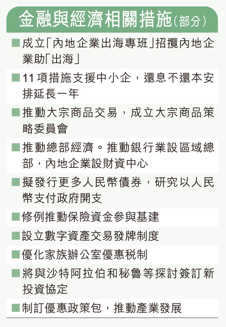 行政長官李家超昨在施政報告中表示,特區政府不斷強化香港金融體系,把握世界投資者重新配置資產機遇,鞏固香港的國際金融中心地位;同時持續強化股票市場,進一步完善主板上市及結構性產品發行機制。