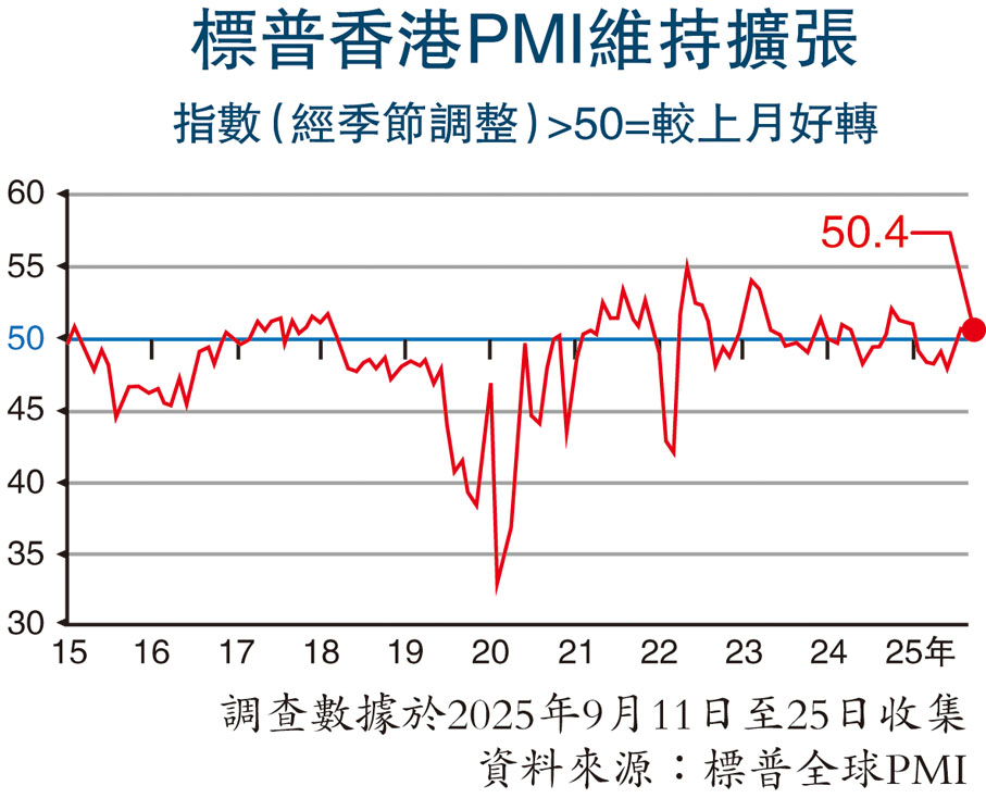 營商環境連續兩月改善 港企業務展望兩年最強 9月PMI達50.4 經濟活動擴張10個月最快
