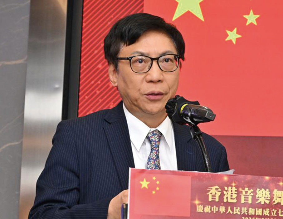今晚我們歡聚一堂,共同慶祝中華人民共和國成立76周年。我謹代表香港音樂舞蹈界,向蒞臨今晚宴會的羅淑佩局長、馬逢國議員、霍啟剛議員,各位嘉賓領導,以及各位藝術界的朋友們,表示最熱烈的歡迎!