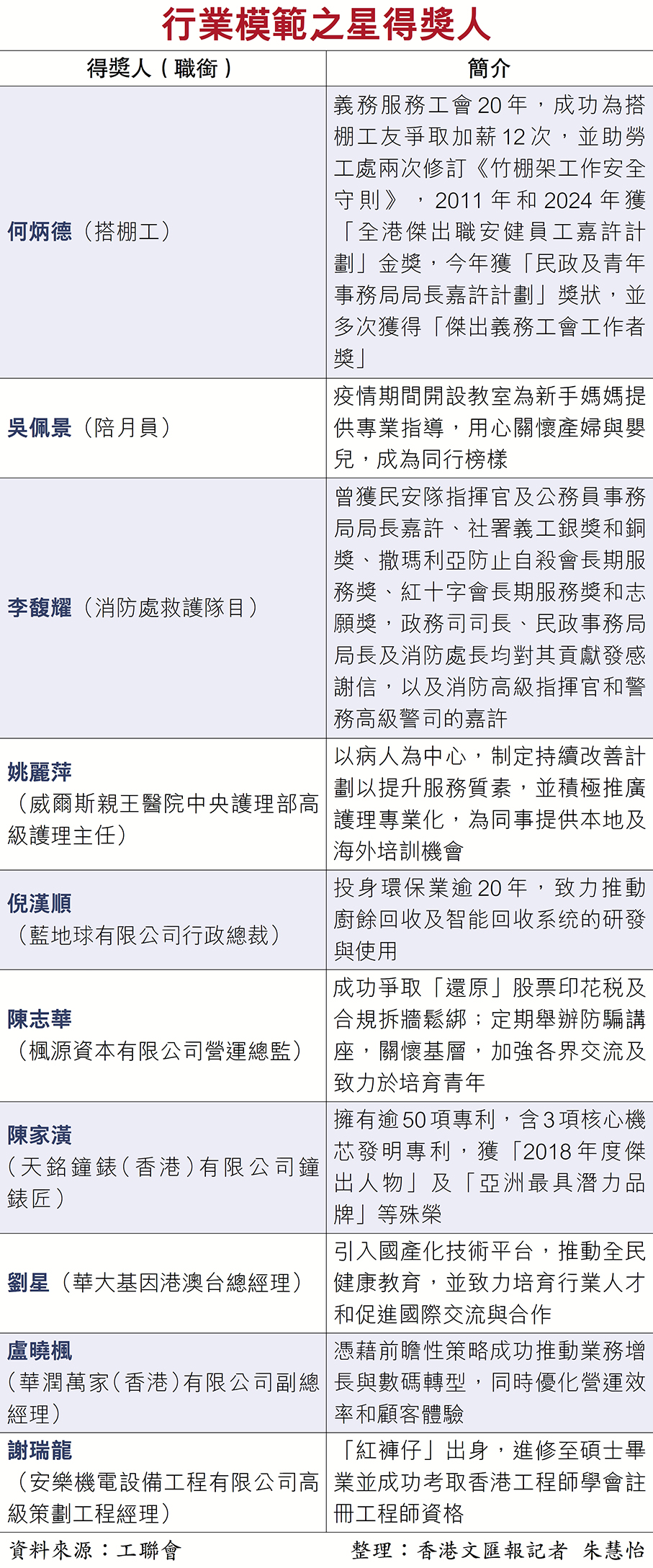 十翹楚獲行業模範之星