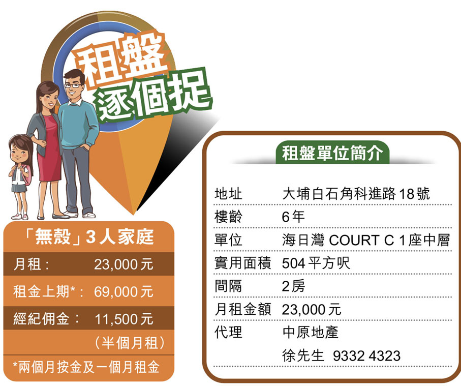中原地產新界東豪宅白石角第二分行副分區營業經理徐家倫表示,海日灣離白石角科學園僅7分鐘步程,屬於臨海地段,最新錄得2期1座中層B室租務成交,單位實用面積700平方呎,三房連套房及工人房間隔,業主開價25,500元,日前議價後以25,000元租出,實用呎租約35.7元。新租客為區內客,見單位價錢合預算,間隔合用,即決定租入單位自住。業主是次租出單位可享約3.2厘租金回報。