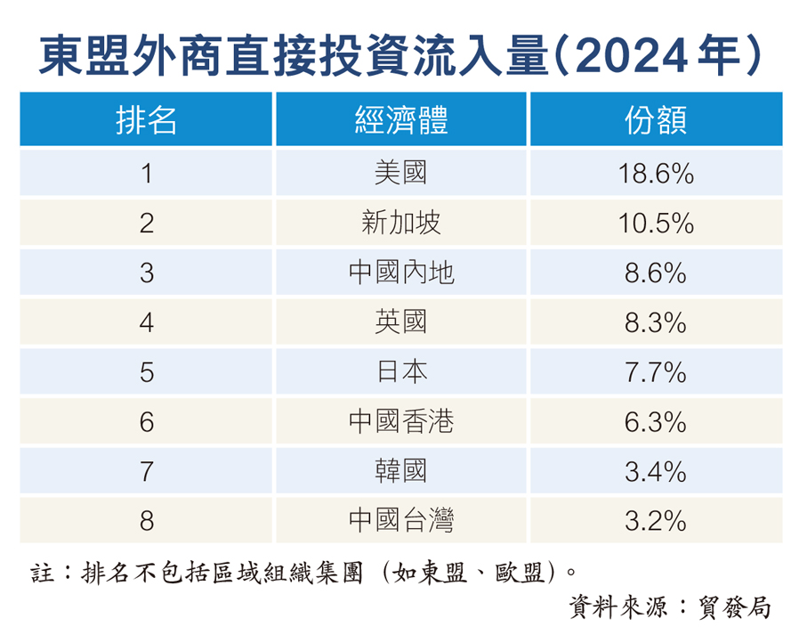 范婉兒續指,是次最新研究以電動車產業為例,顯示香港已在區域供應鏈轉型中發揮樞紐作用。隨着內地汽車製造商及其國際夥伴優先在東南亞擴大電動車及電池生產,香港作為投資及金融中心,有效引導資金流入印尼、泰國及馬來西亞等地。另外,投資數據亦顯示,愈來愈多內地企業以香港作為區域項目的支援平台。香港佔部分東盟國家的外商直接投資(FDI)金額比例高於內地,以馬來西亞為例,香港去年有關佔比達35.5%,遠高於內地的0.1%;香港在印尼市場的FDI佔比達13.7%,略多於內地13.5%。這是由於內地企業經香港子公司對外投資,而非直接到當地進行。
