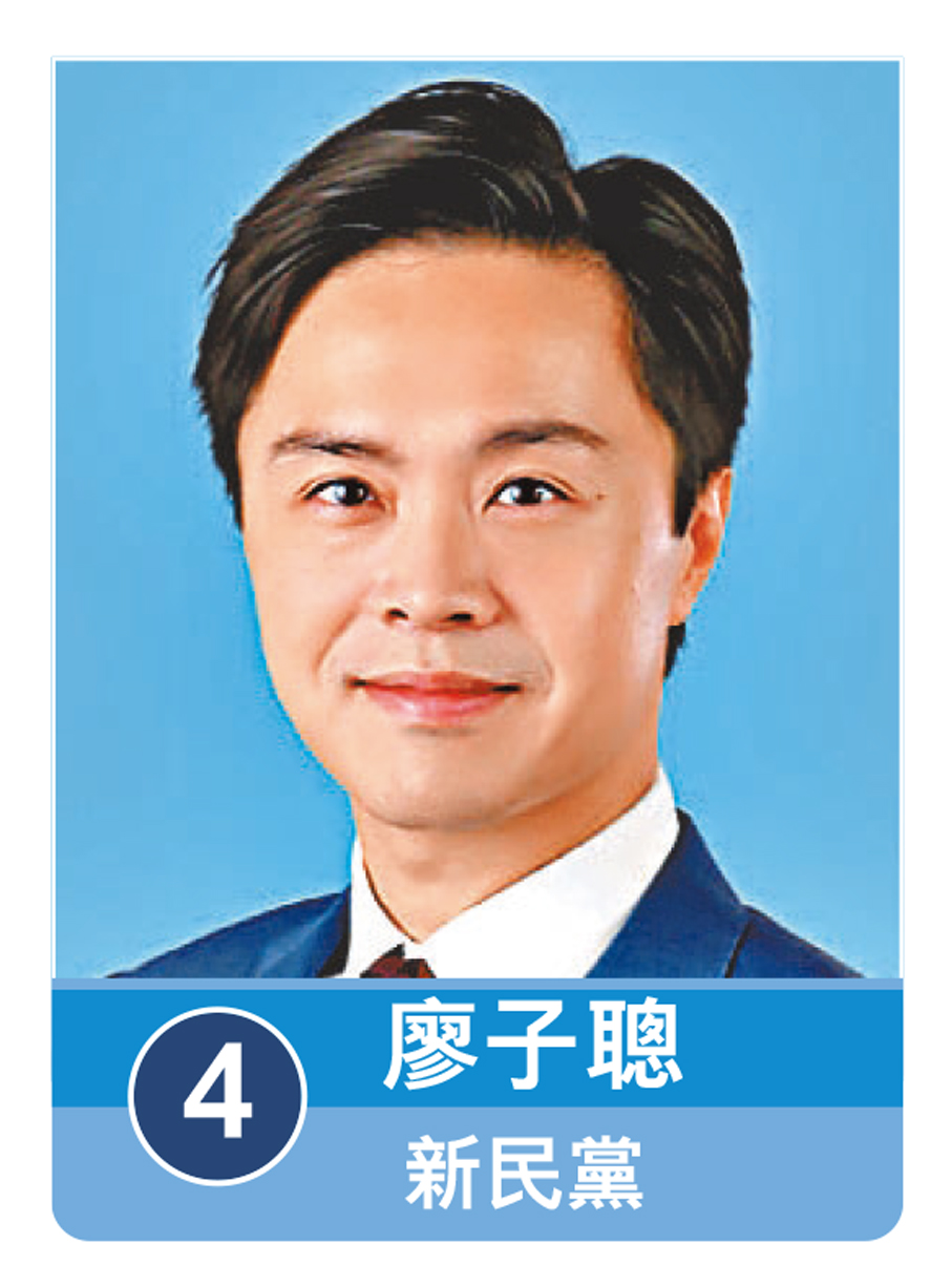 4號候選人、沙田區區議員廖子聰服務新界超過十年,深入了解基層與中產的實際需要,他希望運用多年積累的實幹經驗,全力推動新界北發展,制定惠及新界北居民的公共政策,提升市民的生活品質。他的政綱聚焦北部都會區發展、提升醫療服務質素以及促進生育和家庭福祉等議題。