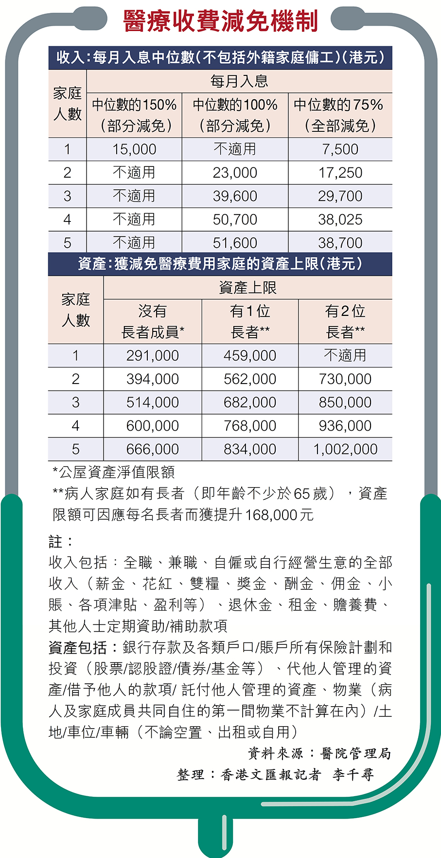 在新收費機制下,急症室的危殆及危急病人獲豁免收費,其他次緊急至非緊急病人則收400元,其他專科門診、病理檢驗服務等收費都有所調整,而費用減免機制則擴大涵蓋範圍及期限,並修訂家庭定義,入息限額將以家庭住戶入息中位數為基準。(詳見表)