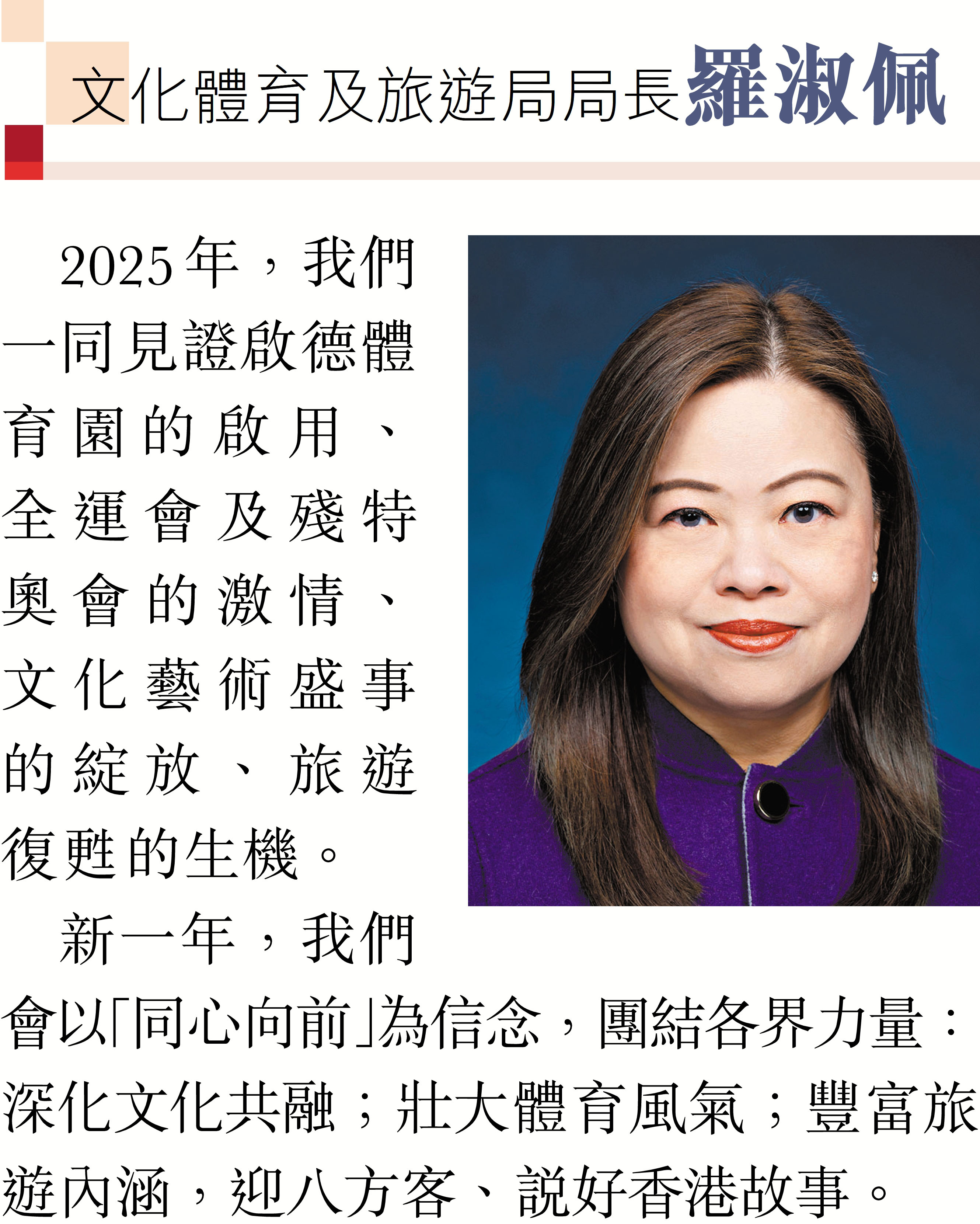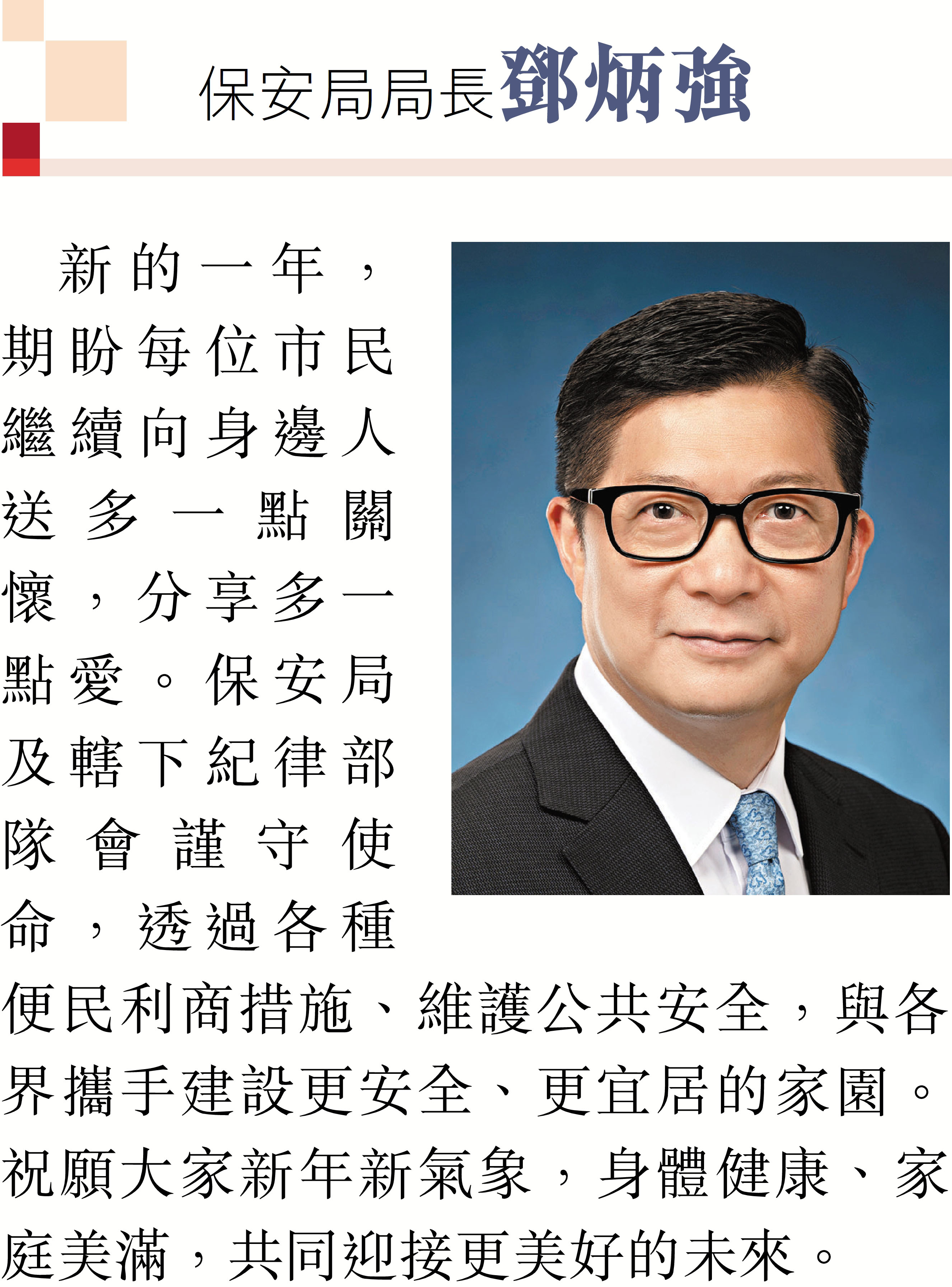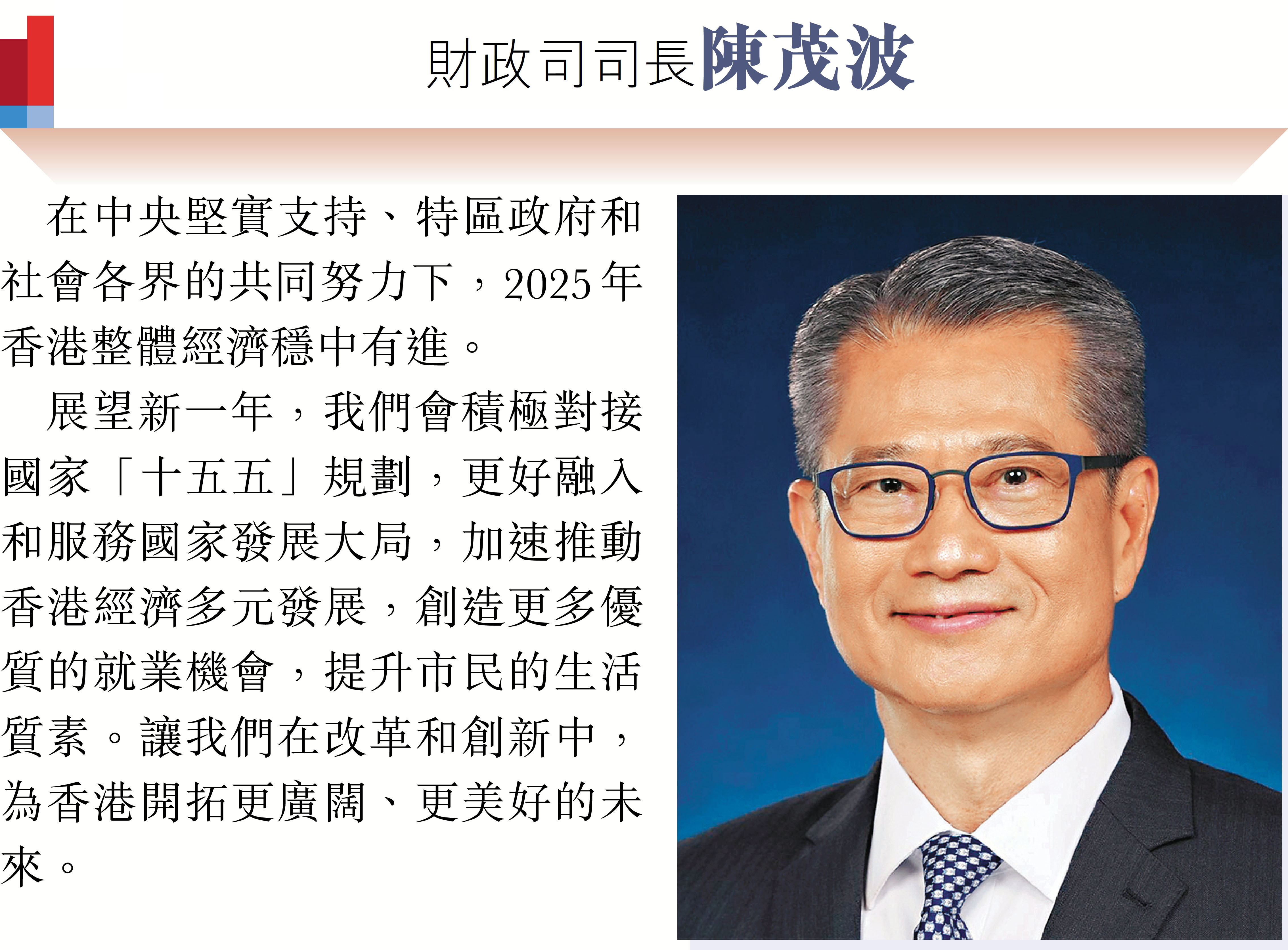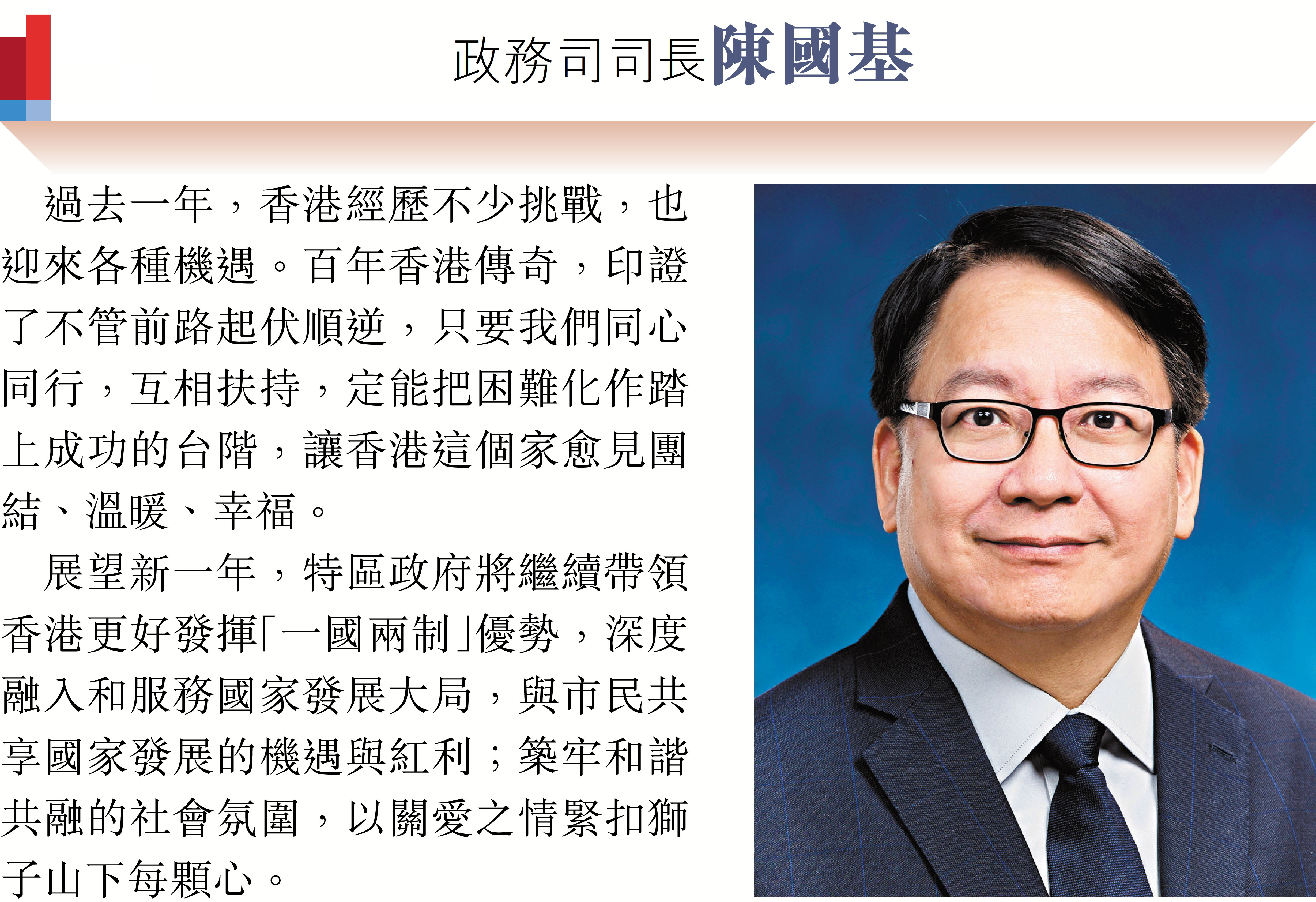 特首及司局長向香港文匯報讀者誠摯送上新年祝福 同心同行發揮所長 聚力共建美好香江
