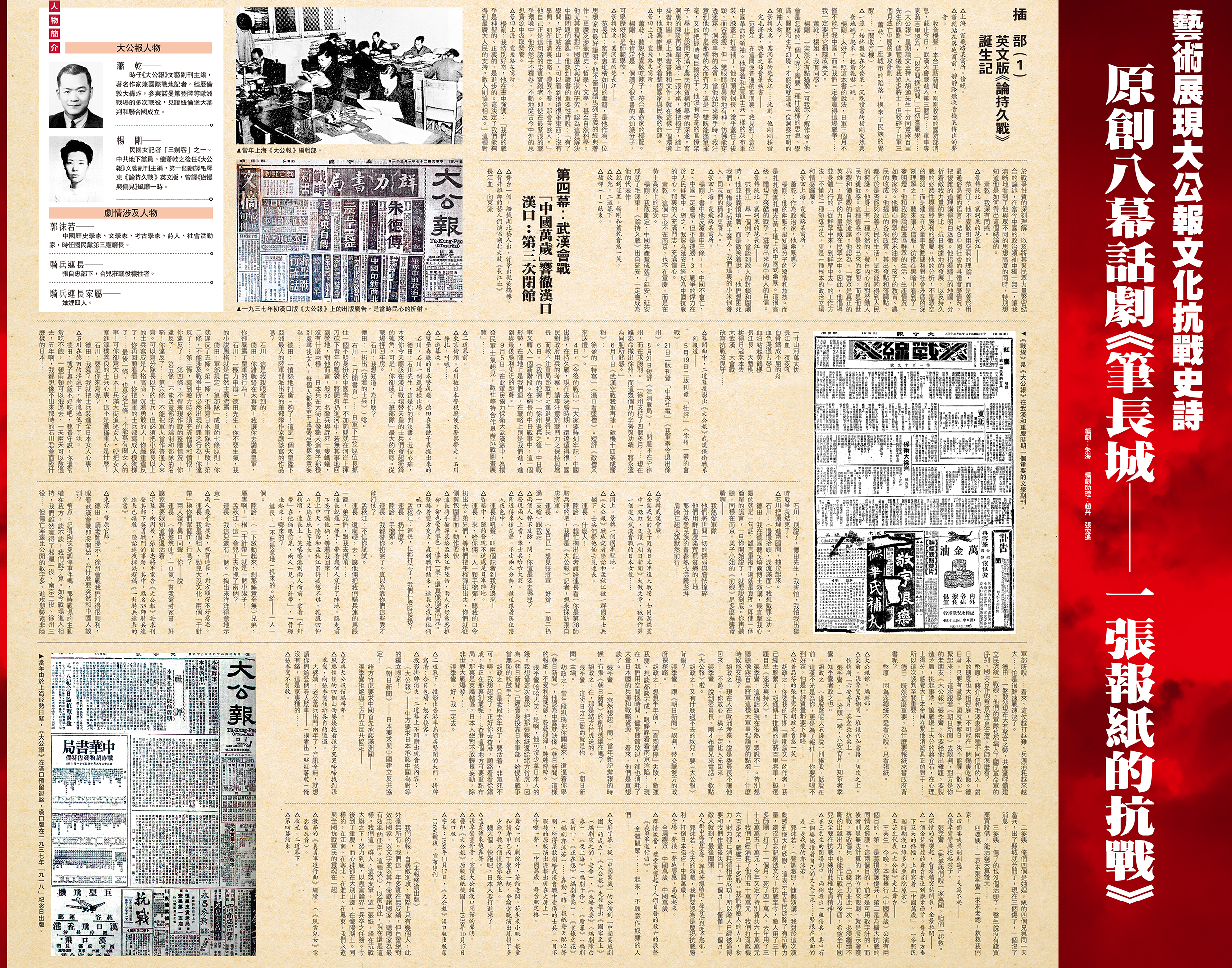 藝術展現大公報文化抗戰史詩 原創八幕話劇《筆長城──一張報紙的抗戰》
