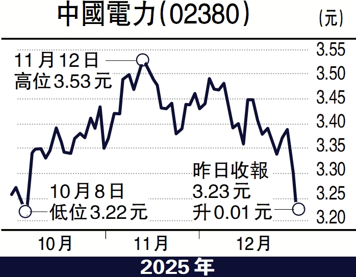 中國電力(02380)昨天公布,於2025年11月的合併總售電量為1009.97萬兆瓦時(MWh),較2024年同月增加15.38%,2025年首11個月的合併總售電量約1.16億兆瓦時,較2024年同期減少1.17%,可見在冬季來臨後,售電量增長加快。另外,在全球淨零排放及本港能源轉型的大趨勢下,中國電力近年積極推動綠色低碳發展。其在潔淨能源的布局及成效,近日更獲內地權威獎項「國新盃·ESG金牛獎百強」肯定,印證其轉型策略的成功。