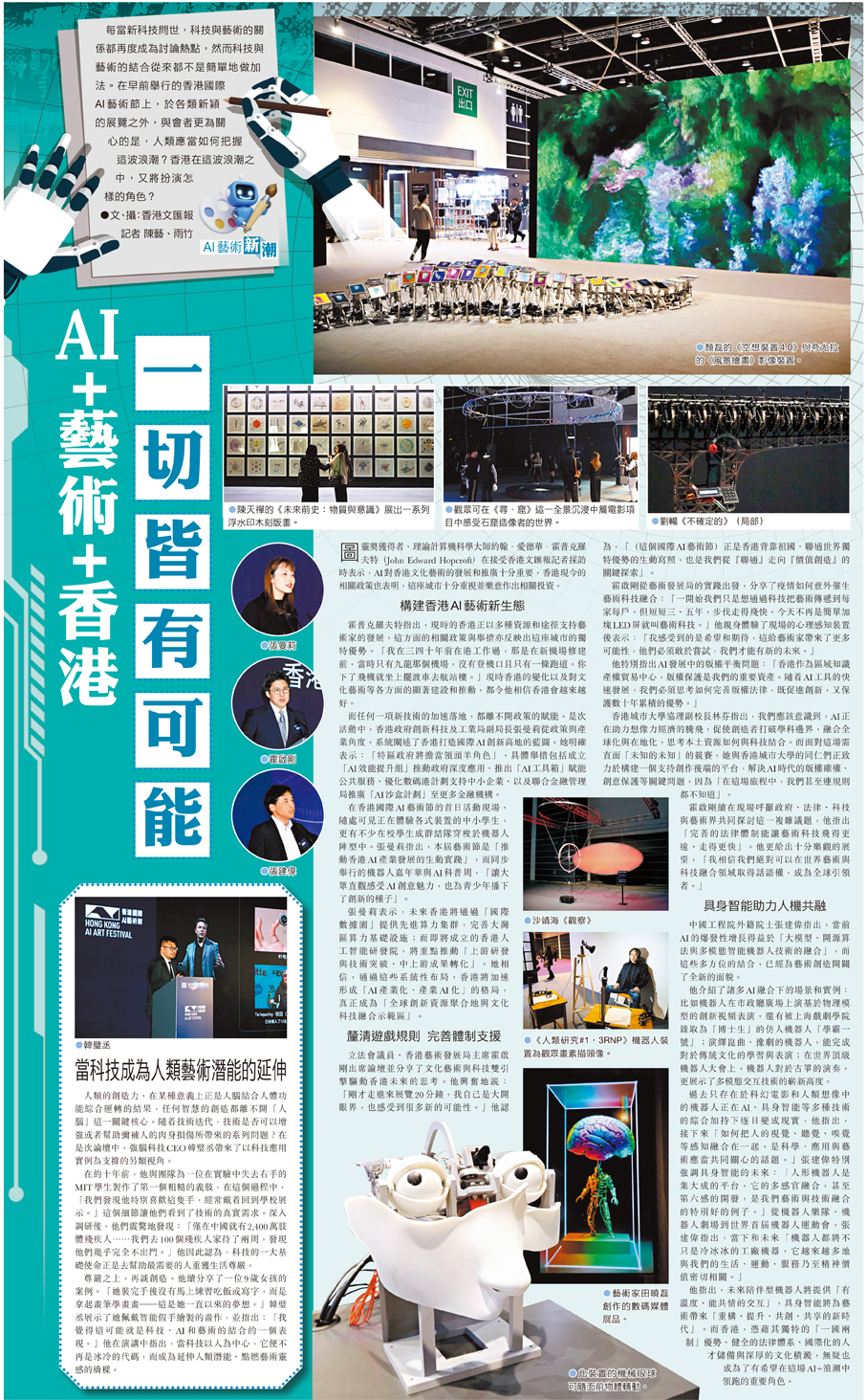 他指出,未來陪伴型機器人將提供「有溫度、能共情的交互」,具身智能將為藝術帶來「重構、提升、共創、共享的新時代」。而香港,憑藉其獨特的「一國兩制」優勢、健全的法律體系、國際化的人才儲備與深厚的文化積澱,無疑也成為了有希望在這場AI+浪潮中領跑的重要角色。