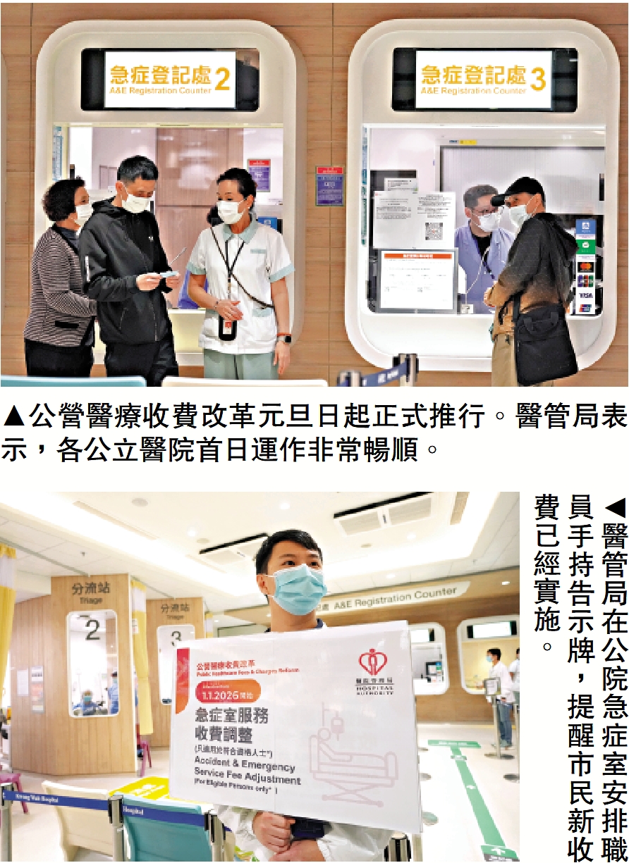【大公報訊】記者易曉彤報道:醫管局由元旦日起正式推行公營醫療收費改革。截至昨日下午二時,醫管局轄下18間公立醫院的急症室共接收1982名病人,當中有124名病人獲全數豁免收費。醫管局表示,各公立醫院首日運作非常暢順,局方已加強人手,在醫院不同部門協助有需要的病人,未來幾日會繼續密切監察運作情況,確保元旦假期結束後,各公立醫院的服務繼續維持暢順。