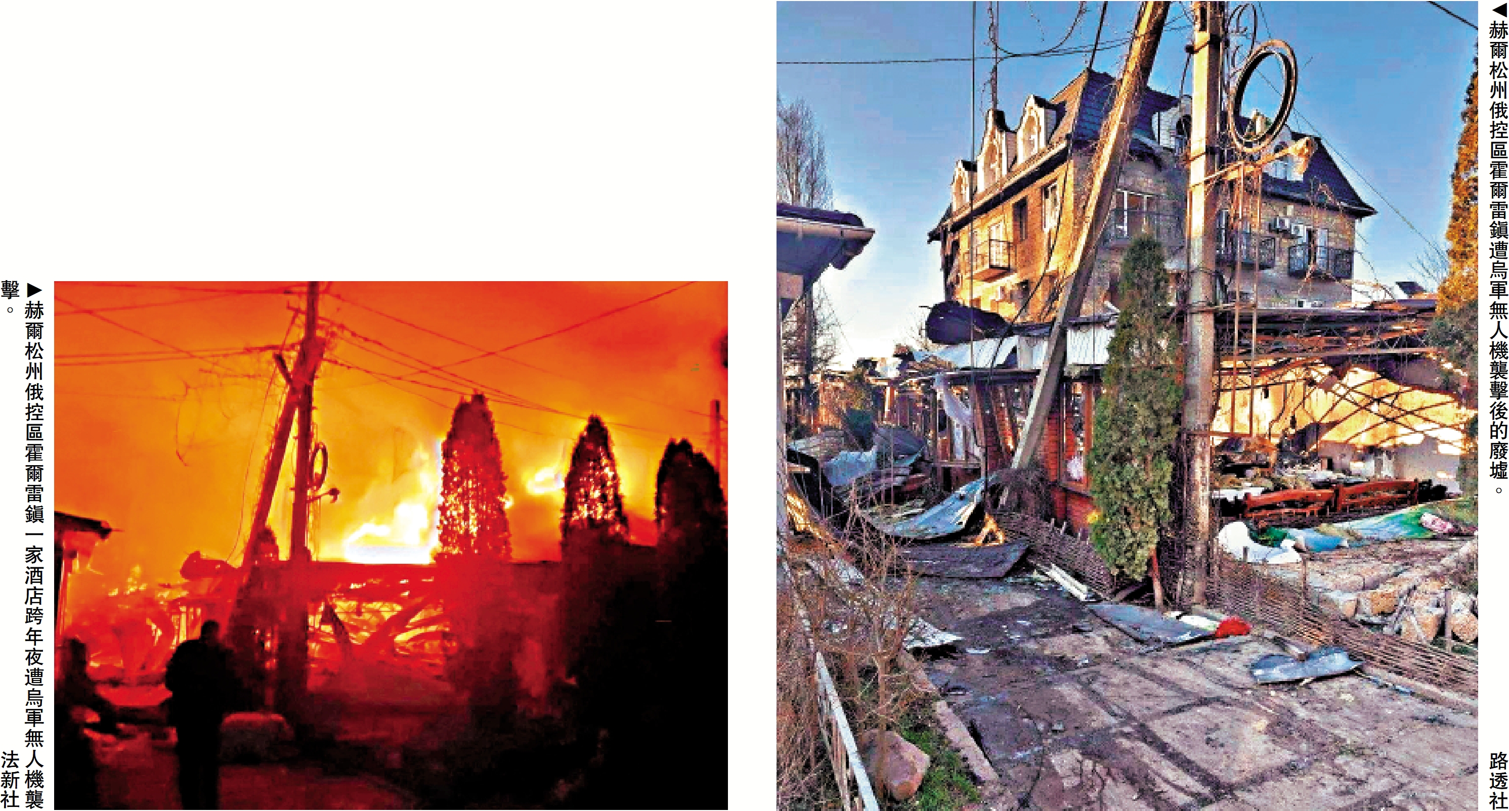 【大公報訊】俄羅斯外交部1月1日發表聲明,譴責烏克蘭出動3架無人機在跨年夜襲擊赫爾松州俄控區霍爾雷鎮一家咖啡館和一家酒店,當時居民正在那裏慶祝新年。襲擊引發大火,截至2日,已造成包括兒童在內至少27人死亡、31人受傷。