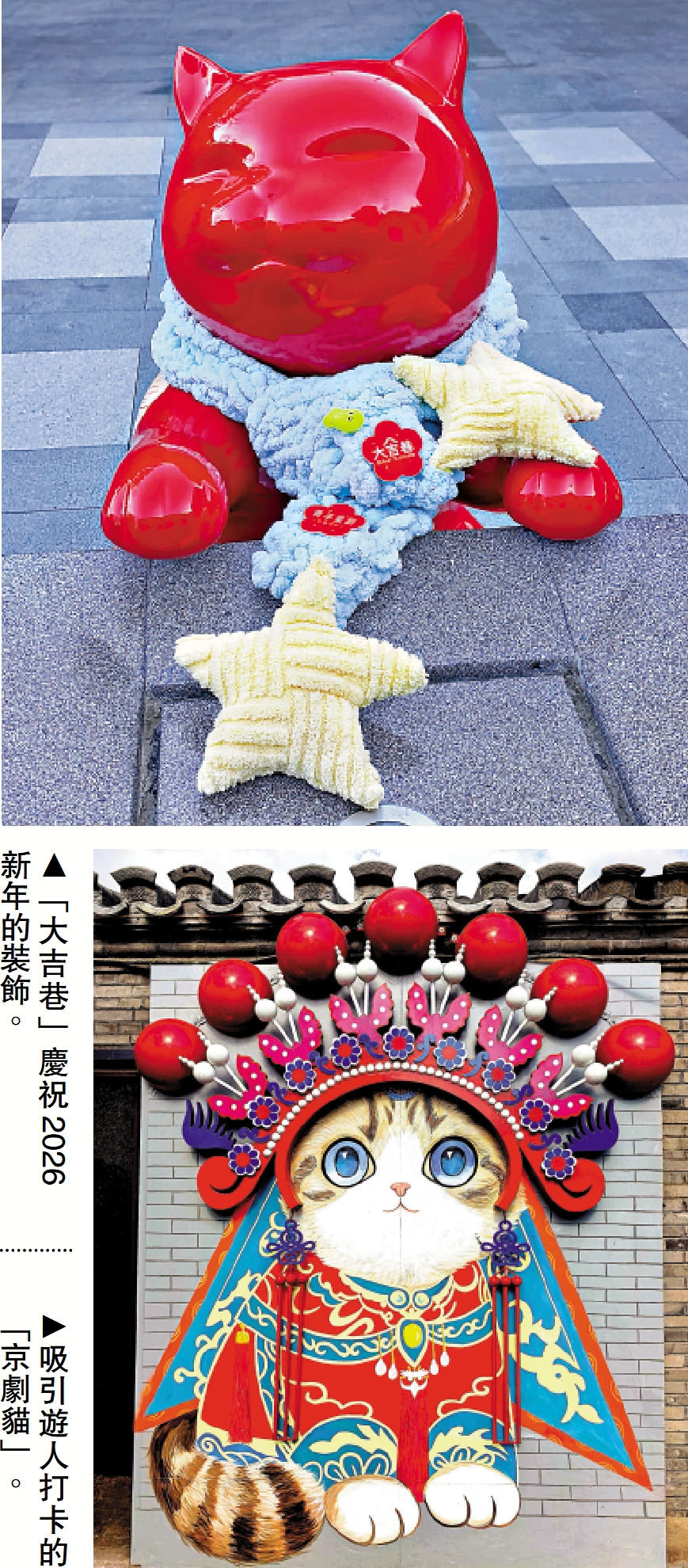 貓,向來是北京胡同裏的精靈。但法源寺的貓,似乎獨有一份禪意。更透着一股靈慧之氣。常有香客看見,貓兒吃完遊人投餵的食物,並不急着離開,反而踱步到殿前,前爪端放,垂首蜷尾,似在佛前低語。有人稱這是貓在替人許願:既沾人間煙火,便替眾生祈個平安。正因這份奇妙緣分,後來胡同改造時,設計師特將「法源寺的貓」化為藝術符號,在灰牆黛瓦間繪出了一幅會呼吸的市井長卷。