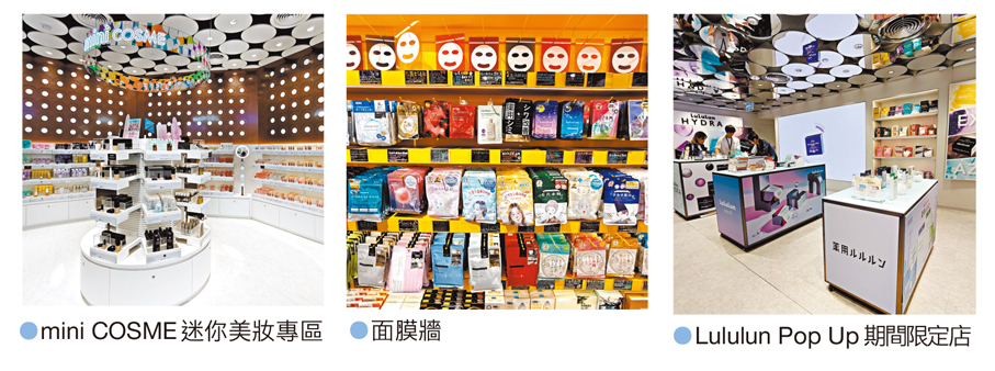 例如,在G/F的mini COSME迷你美妝專區,提供多種品牌的美妝試用裝,以親民價格讓你隨意體驗不同產品。在1/F的Lululun Pop Up 期間限定店,提供贏得了眾多美妝大獎的人氣熱賣面膜系列﹔在@cosme暢銷排行榜,店內根據護膚、彩妝、香氛、身體保養、美容工具等不同類別,陳列各式美妝產品,並提供各類產品的暢銷排名,展示當前最受歡迎的商品。在2/F的面膜牆,則將各式各樣的面膜匯聚一牆,是視覺上的震撼亮點!