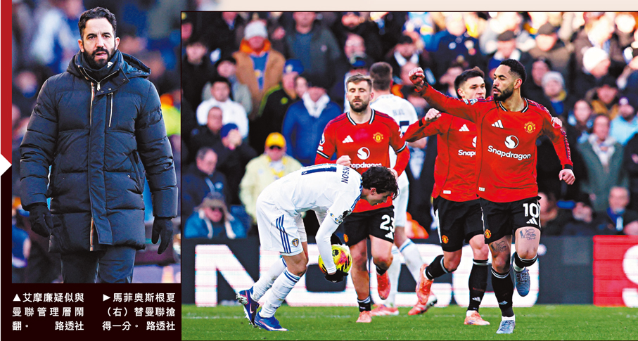 曼聯在新一年首場英超賽事延續近期頹勢,作客以1:1 僅和列斯聯,近五場聯賽第四度失分。除了主帥艾摩廉的排陣惹人非議,他賽後的言論明顯與管理層關係惡化,而曼聯亦於昨晚宣布辭退這位葡萄牙籍主帥。