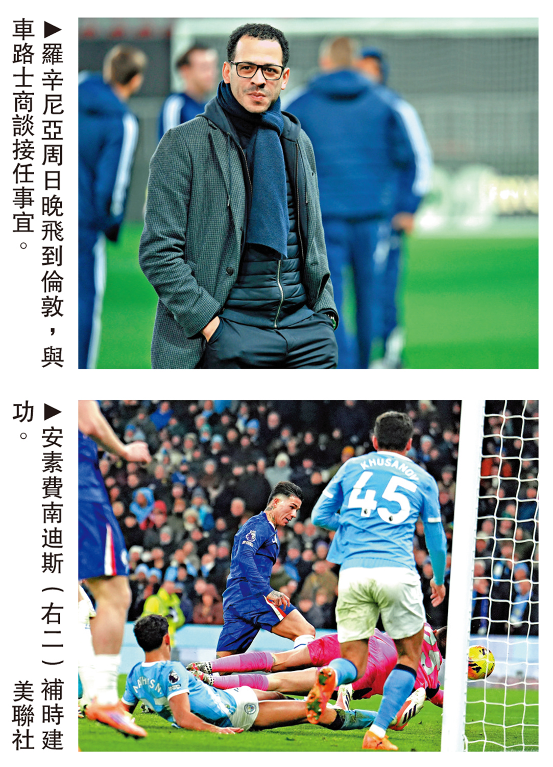 車路士英超逼和曼城 料聘用羅辛尼亞