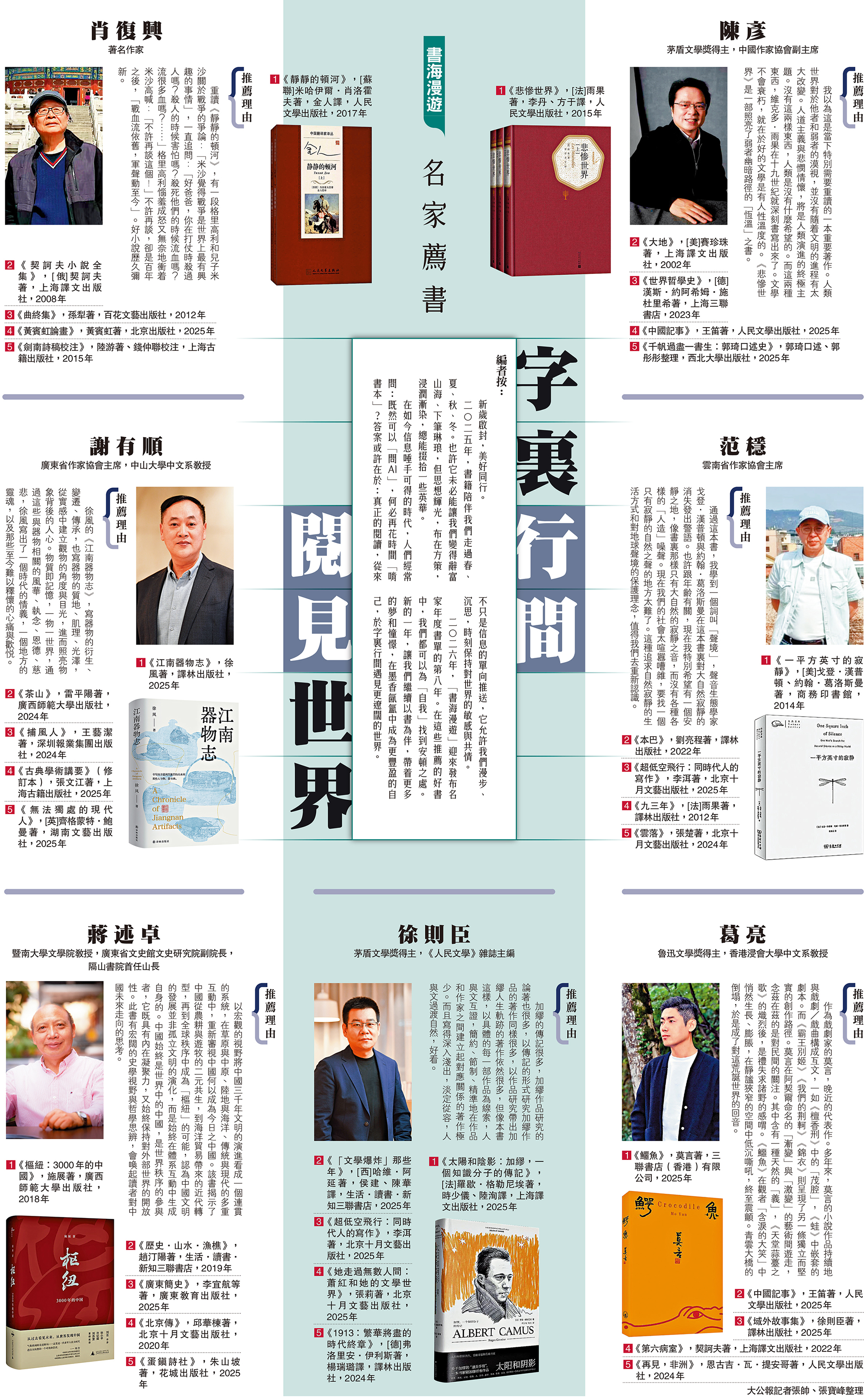 二⚪二六年,「書海漫遊」迎來發布名家年度書單的第八年。在這些推薦的好書中,我們都可以為「自我」找到安頓之處。新的一年,讓我們繼續以書為伴,帶着更多的夢和憧憬,在墨香氤氳中成為更豐盈的自己,於字裏行間遇見更遼闊的世界。