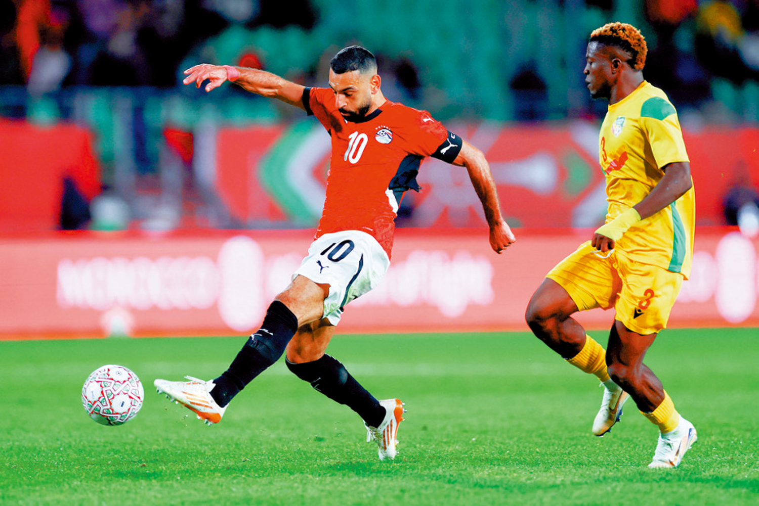 在摩洛哥開打的非洲國家盃6日舉行16強埃及對貝寧,埃及前鋒馬莫殊上半場單刀門前失機,半場雙方悶和0:0。埃及至下半場第69分鐘由阿迪亞禁區外撞射先開紀錄,埃及未能守到最後,貝寧於一次攻勢補中得手,法定時間內追平1:1完場。加時第97分鐘埃及入球領先2:1,至加時下半場補時4分鐘,穆罕默德沙拿(左)藉對手空群而出輕鬆遠射入網成3:1完場,沙拿今屆賽事上陣3場都有入球。\路透社