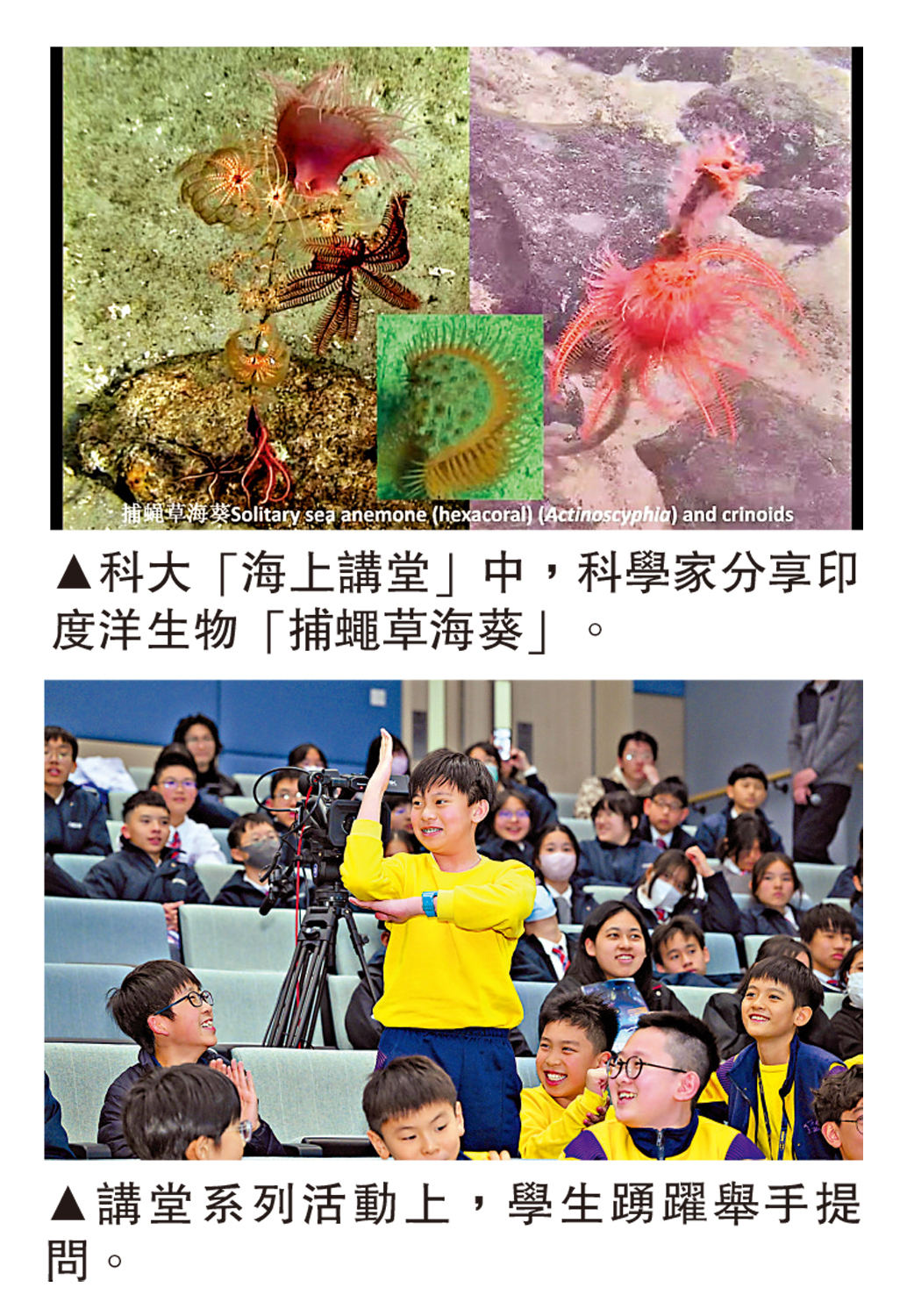 【大公報訊】記者郭如佳報道:昨天,由南方海洋科學與工程廣東省實驗室(廣州)、香港科技大學、「數字化深海典型生境」大科學計劃香港國際合作中心、自然資源部第一海洋研究所、潘樂陶氣候變化與可持續性研究中心聯合主辦的「海上講堂」海洋科普教育系列活動(二),在香港科技大學夏利萊博士及夫人演講廳舉行。