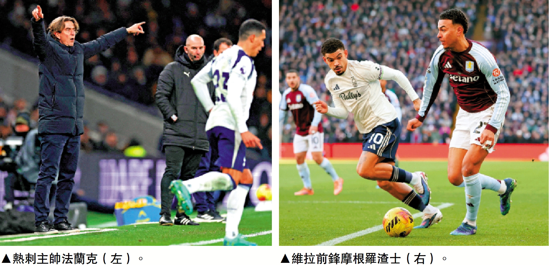 維拉目前高踞英超第3位,亦與第4位的利物浦有8分的超安全距離,而球隊已經有30年未嘗奪標滋味,趁今季球隊表現極佳當然要藉勢爭取。狀態巔峰的摩根羅渣士之前4戰熱刺錄得3球、2助攻,包括上屆第4圈送上1球、1助攻助維拉主場以2:1淘汰熱刺,今戰隨時又有佳作。