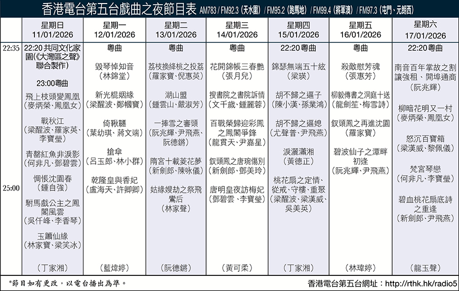 香港電台第五台戲曲之夜節目表