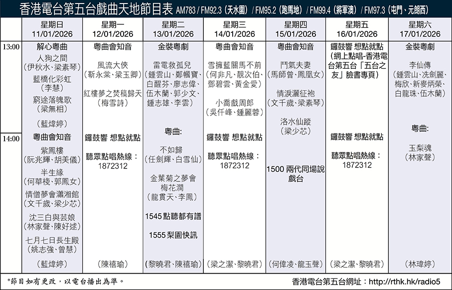 香港電台第五台戲曲天地節目表