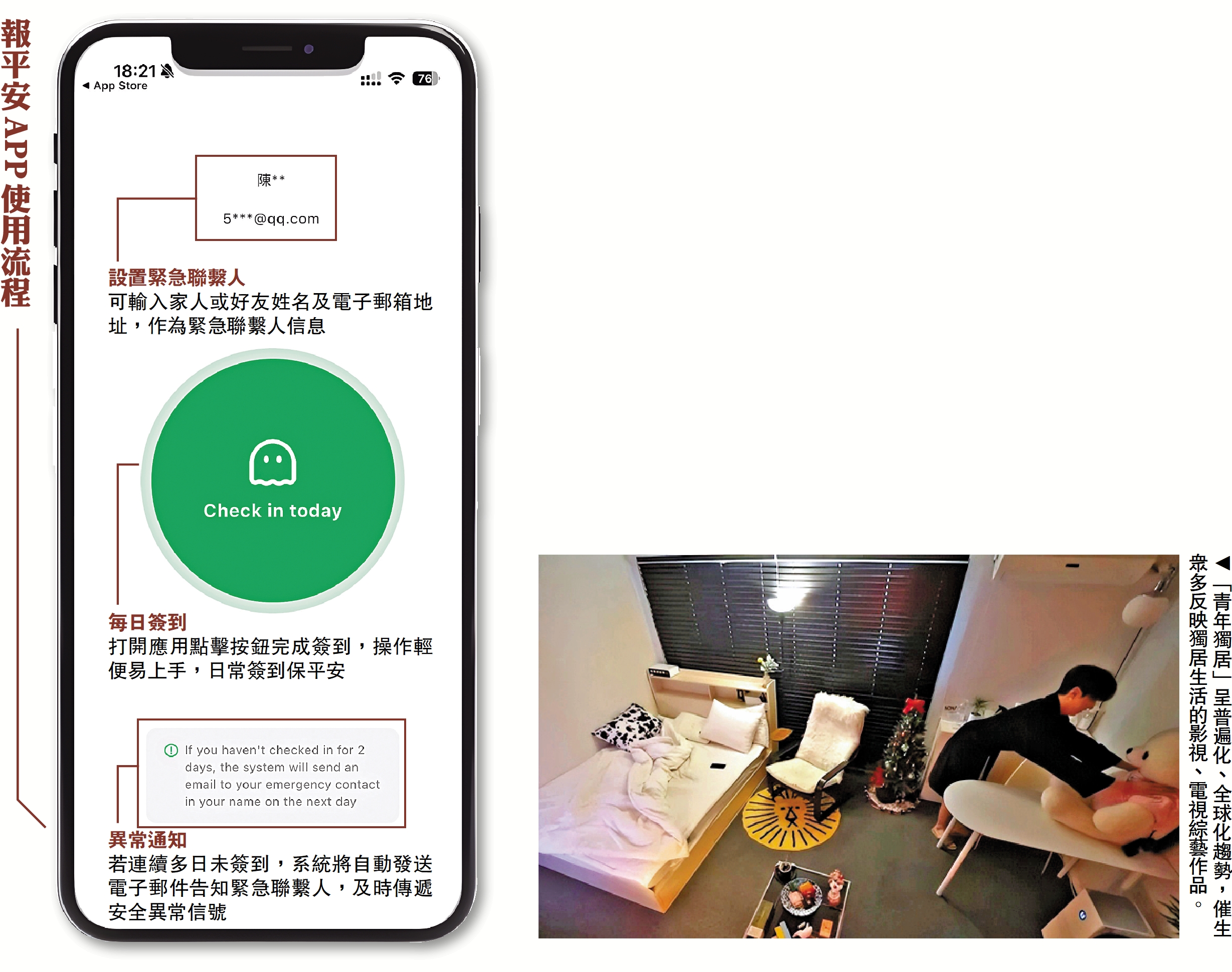 引發共鳴/定時報平安 獨居青年「電子護身符」