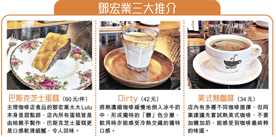 咖啡店不單提供咖啡與蛋糕等輕食,亦有薄餅、意粉等主餐,更有每日限定的蛋糕,全部由廚師出身的鄧宏業太太主理。不過阿業笑言,印象最難忘的仍是十多年前的一杯「救命啡」:「我在港隊退役後,2013年加入比利時的職業車隊,剛入隊參賽就遇上大雪迷路與大隊失散,又冷又焦急的時候幸好遇上附近居民請我喝一杯熱咖啡,更開車載我到終點會合車隊,這一杯熱咖啡至今仍讓我十分感恩。」如今自己開設咖啡店,他亦期望能讓車友提供一個舒適的聚腳點,享受單車與咖啡的樂趣。
