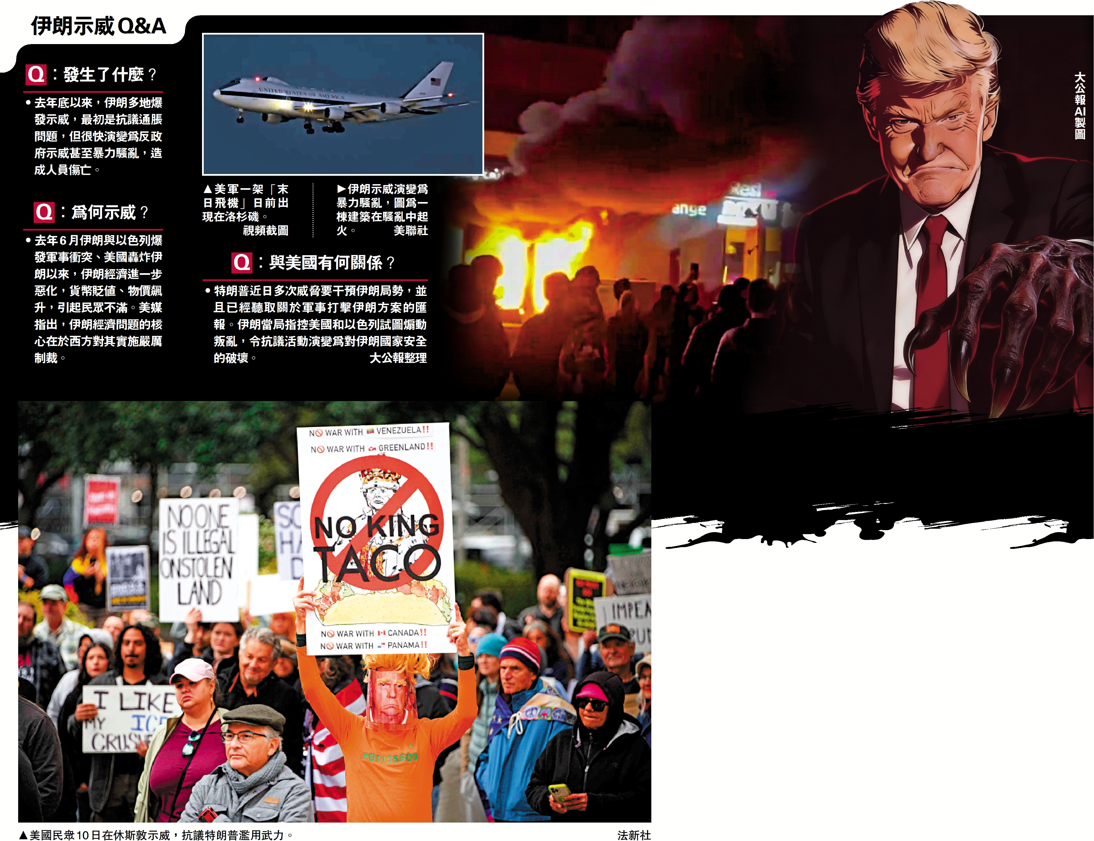 •特朗普近日多次威脅要干預伊朗局勢,並且已經聽取關於軍事打擊伊朗方案的匯報。伊朗當局指控美國和以色列試圖煽動叛亂,令抗議活動演變為對伊朗國家安全的破壞。