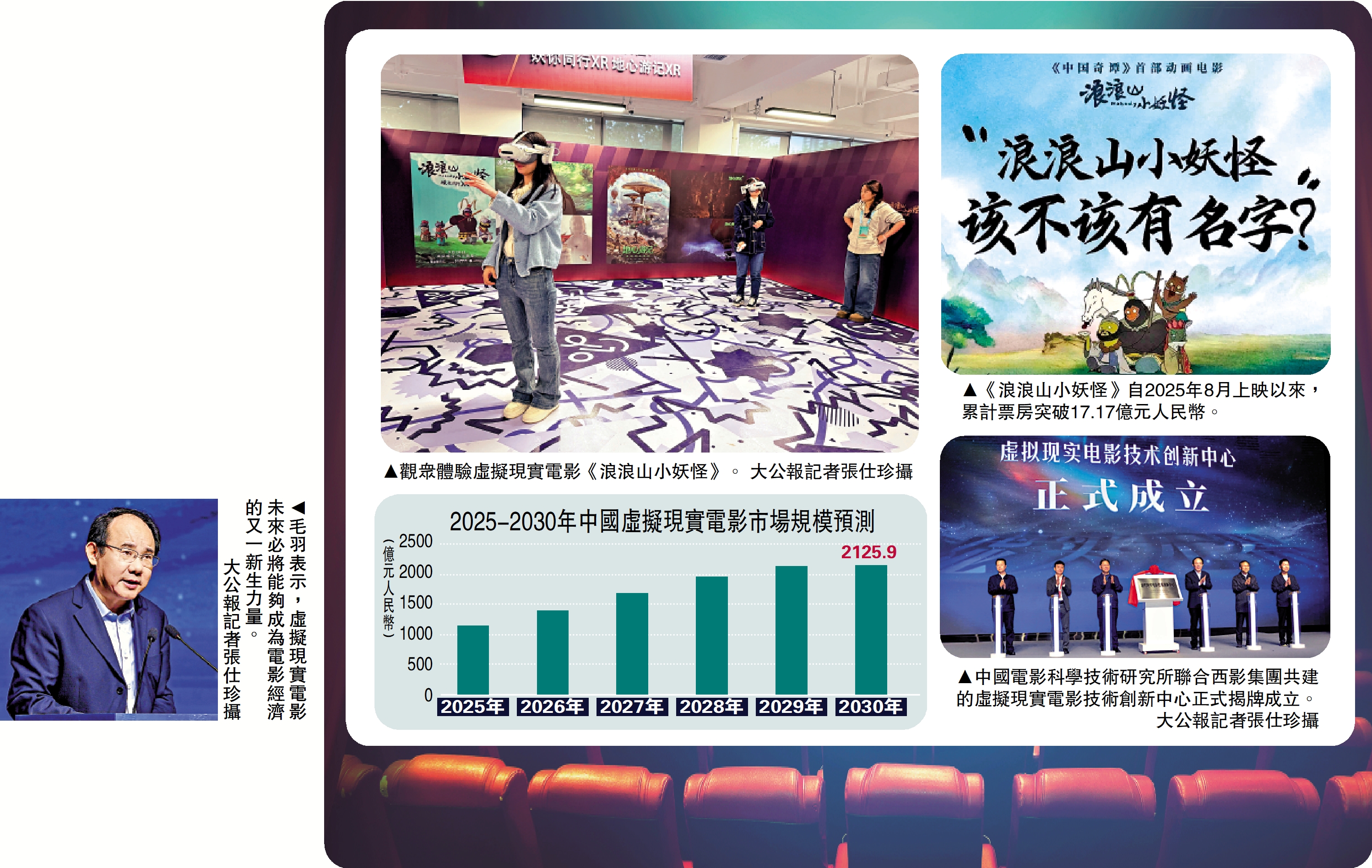 西影無界科技開發了全球首款XR擴展現實電影院系列,西部電影集團(簡稱西影集團)董事長趙文濤表示,XR電影市場是一個全新的、有待開拓的「白海」領域。中宣部電影局主持日常工作的副局長毛羽也表示,自2025年3月《國家電影局關於促進虛擬現實電影有序發展的通知》下發以來,已有近百部虛擬現實影片申報備案,十部影片通過內部審查,申報公司來自全國10多個省區市。\大公報記者 張仕珍