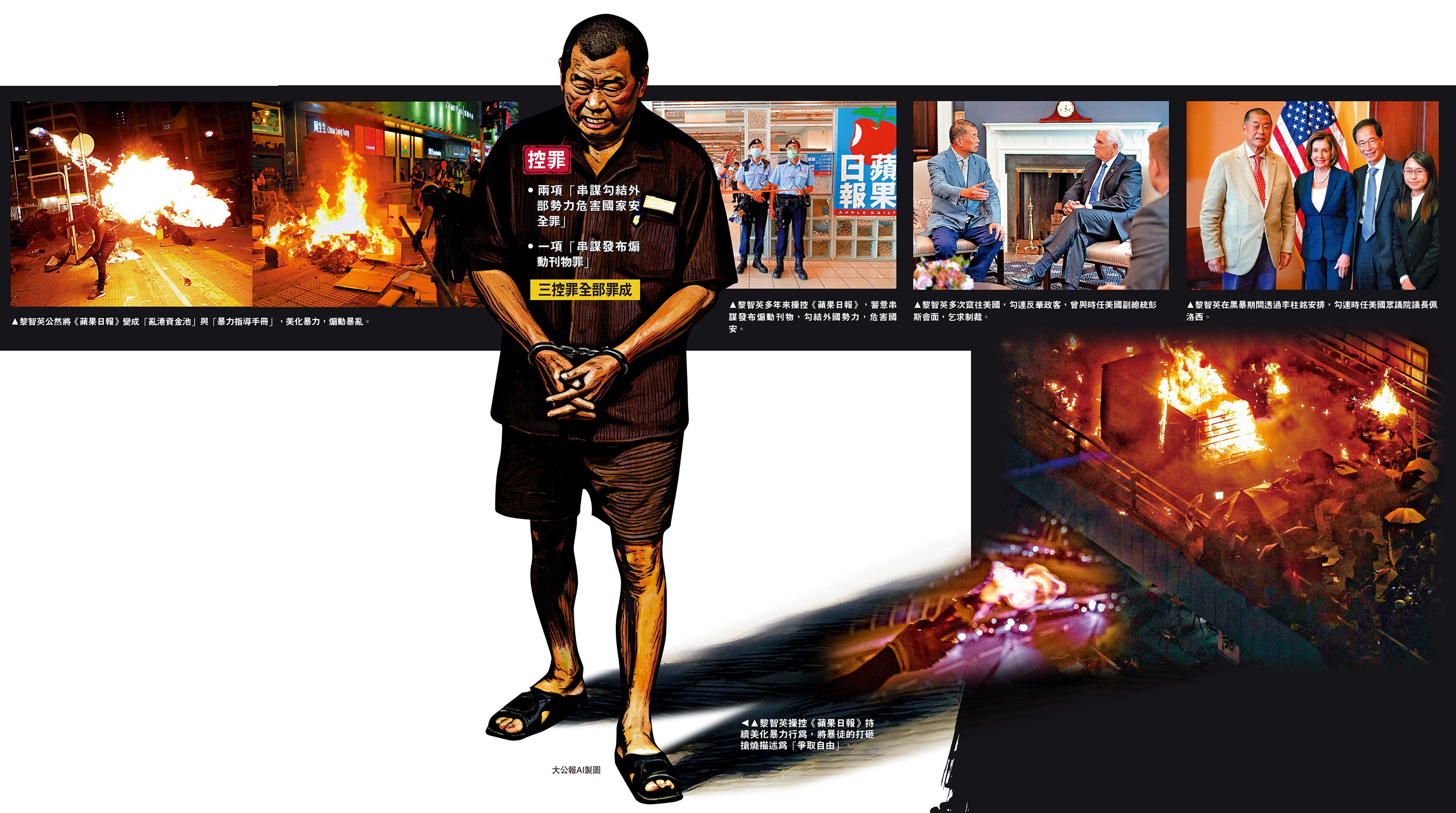 2025年12月15日,高等法院原訟法庭就黎智英及《蘋果日報》相關三間公司被控共三項危害國家安全罪行的案件作出裁決。黎智英和三間被告公司全部控罪罪名成立。法官在判詞中指出,確信黎智英是三項串謀控罪的主謀,他利用《蘋果日報》作為平台,蓄意串謀發布煽動刊物,又勾結外國勢力,對國家安全構成威脅和損害。