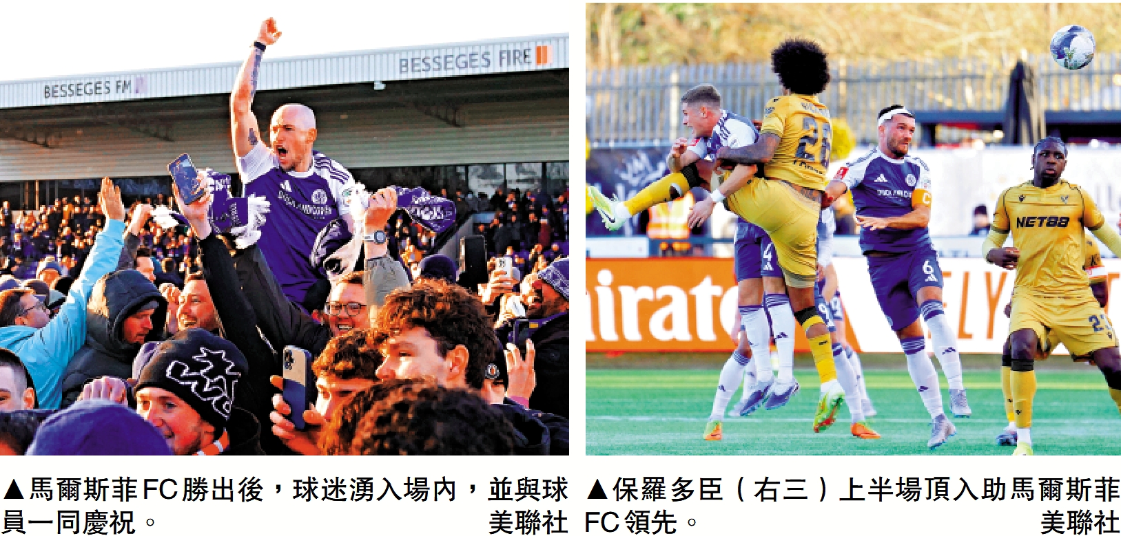 完場後,興奮的馬爾斯菲FC球迷湧進場上慶祝,而感人的是球隊特別將這場隊史其中一次重大勝利,獻給去年底不幸因車禍離世的球隊前鋒麥洛特,後者在上月中一場作客畢福特城的比賽後,駕車回程途中意外離世。