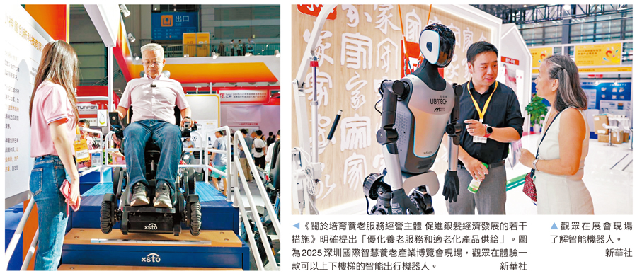 香港文匯報訊(記者 任芳頡 北京報道)為充分激發各類養老服務經營主體活力,促進銀髮經濟發展,民政部等八部門近日出台《關於培育養老服務經營主體 促進銀髮經濟發展的若干措施》(簡稱《措施》),其中提到,鼓勵養老服務機器人產業發展,促進機器人技術、醫療康復、智能家居等跨產業協同與技術融合,為老年人提供全方位智能化養老支持。香港文匯報記者13日從民政部專題發布會上獲悉,未來將加快推動具身智能技術、基因技術等產品研發,積極探索腦機接口、外骨骼機器人、肌肉外甲等技術,為身體功能退化的老年人提供科技支撐。同時,推動養老服務設施與消費場景深度融合,引導外資更多投向養老產業。
