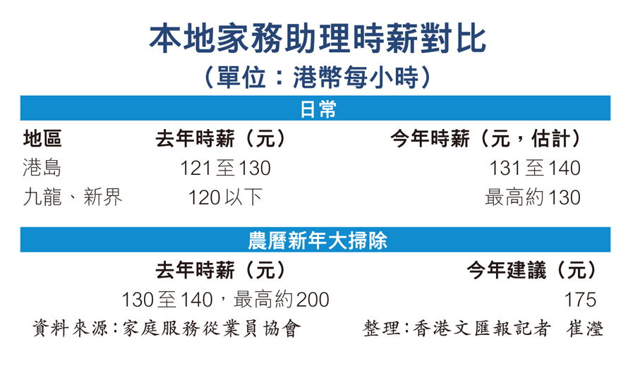 據了解,去年大掃除期間,勞聯及家服工會的建議時薪為170元,結果實際時薪介乎130元至140元之間,最高可達200元。