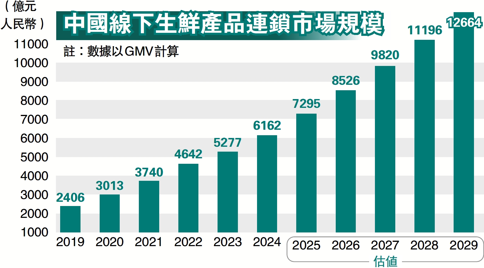 資料顯示,內地社區生鮮連鎖行業正在快速發展,市場規模由2019年的2406億元(人民幣,下同)增長至2024年的6162億元,年均複合增長率達20.7%,並將在未來5年以15.5%的年均複合增長率繼續增長,並在2029年達到1.27萬億元。