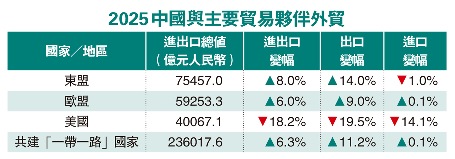 中歐互為第二大貿易夥伴,據海關總署統計,2025年中國對歐盟進出口5.93萬億元,增長6%,佔中國外貿的13%。歐方數據顯示,2025年首10個月,歐盟對華貿易超過7000億美元,佔歐盟進出口總值的14.5%。