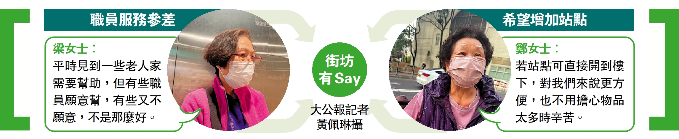 梁女士:平時見到一些老人家需要幫助,但有些職員願意幫,有些又不願意,不是那麼好。