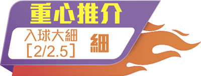 西甲第20輪獨腳戲,第10位艾爾切主場迎戰第16位西維爾。艾爾切今季主場10戰僅一敗,無論近況及排名都在西維爾之上,只是球隊前線本來就火力非強,現時更受到傷兵問題困擾,令爭取入波更見困難,寧吼﹝2/2.5﹞細盤。(NOW 632台周二4:00am直播)