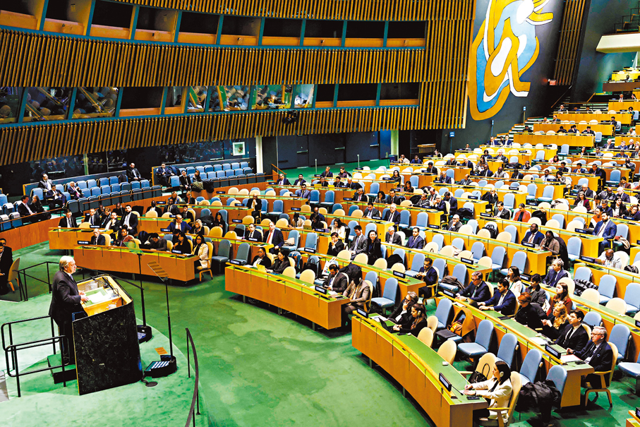 香港文匯報訊 在美國總統特朗普第二任期內,2025年美國對約90%需投票表決的聯合國大會(圖)決議投下反對票,並在43項決議中成為唯一反對國。