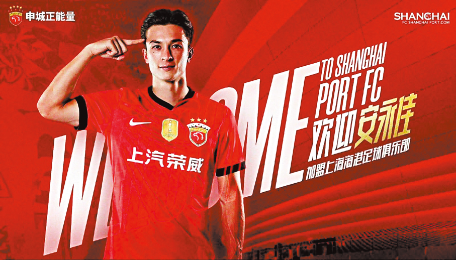 中超冠軍上海海港於昨日(19日)宣布,現年28歲的港足前鋒安永佳落實加盟球隊。海港方面表示,安永佳作為一名能力全面的前鋒,在前場既能夠作為支點為隊友創造機會,也能夠用衝擊力威脅對方的球門,相信他的到來能夠增加海港隊在進攻線上的選擇,為球隊的攻勢足球貢獻力量。