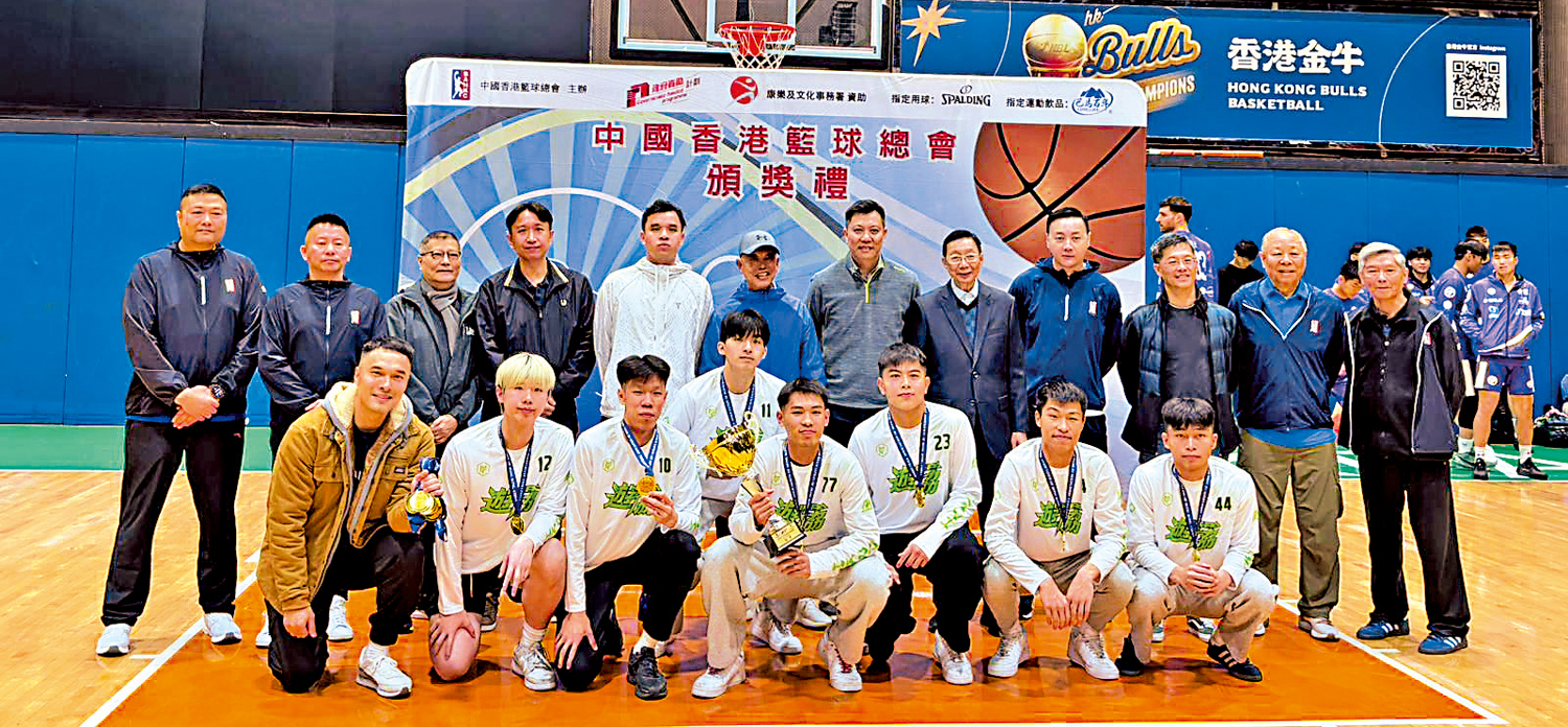 【大公報訊】遊協籃球隊奪得本屆銀牌男子初級組冠軍,20日晚由中國香港籃球總會永遠名譽會長莫耀強(後排左六)頒獎。其他嘉賓包括籃總常務副會長黃耀建(後排左七)、胡臻霆(後排左四)、羅易勤(後排左五)等。