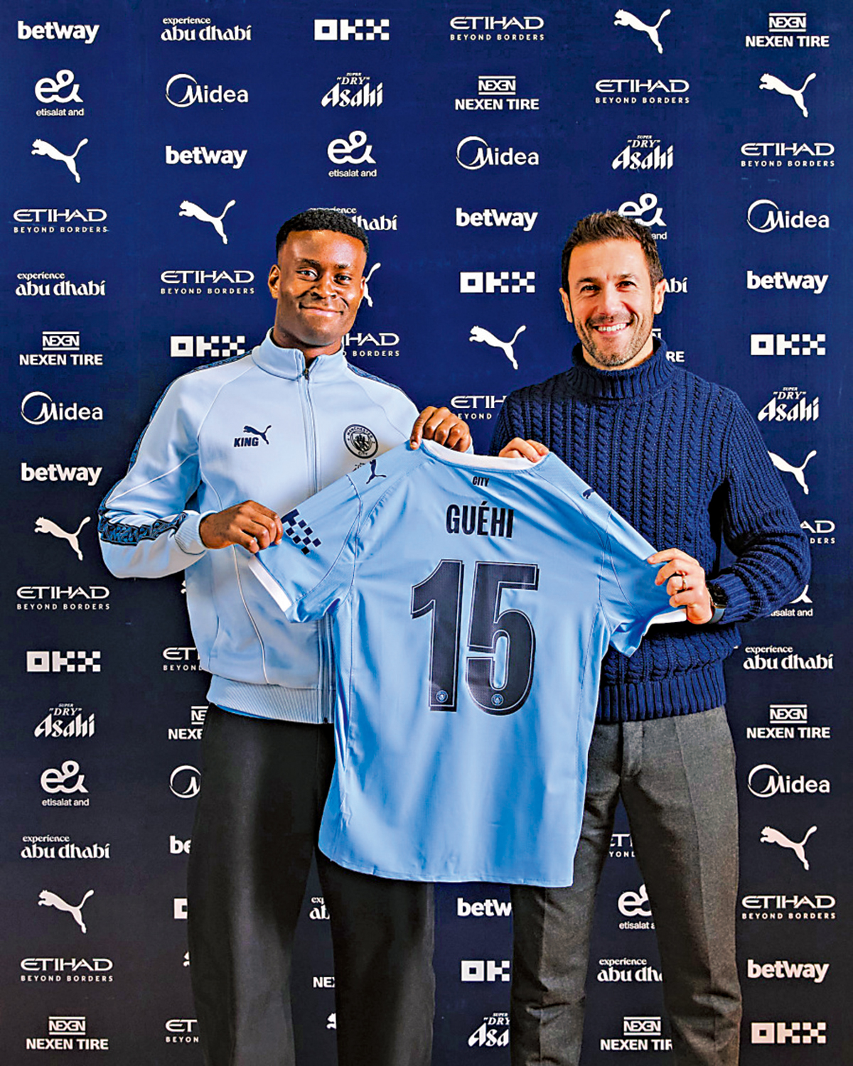 英超曼城20日宣布正式自水晶宮簽入後衛馬克古希(左),雙方簽下5年合約,據報轉會費為2000萬英鎊(約2.1億港元)。曼城目前有多名後衛受傷缺陣,古希的加盟有助鞏固球隊防線,他亦是繼安東尼施美安後,曼城在今個月簽入的第2名球員。將穿上15號球衣的古希表示,加盟曼城是其職業生涯努力的成果,他對今次轉會感到很榮幸。
