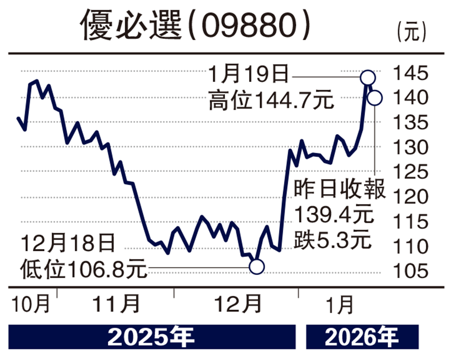 在全球人形機器人領域中,中國傲視同儕,相關板塊翹楚之一優必選(09880)股價持續走強,最近又加強與歐洲航空業巨頭空中巴士(Airbus)合作,昨天急升後回調,不妨伺機吸納,料反覆推向52周高位161元。