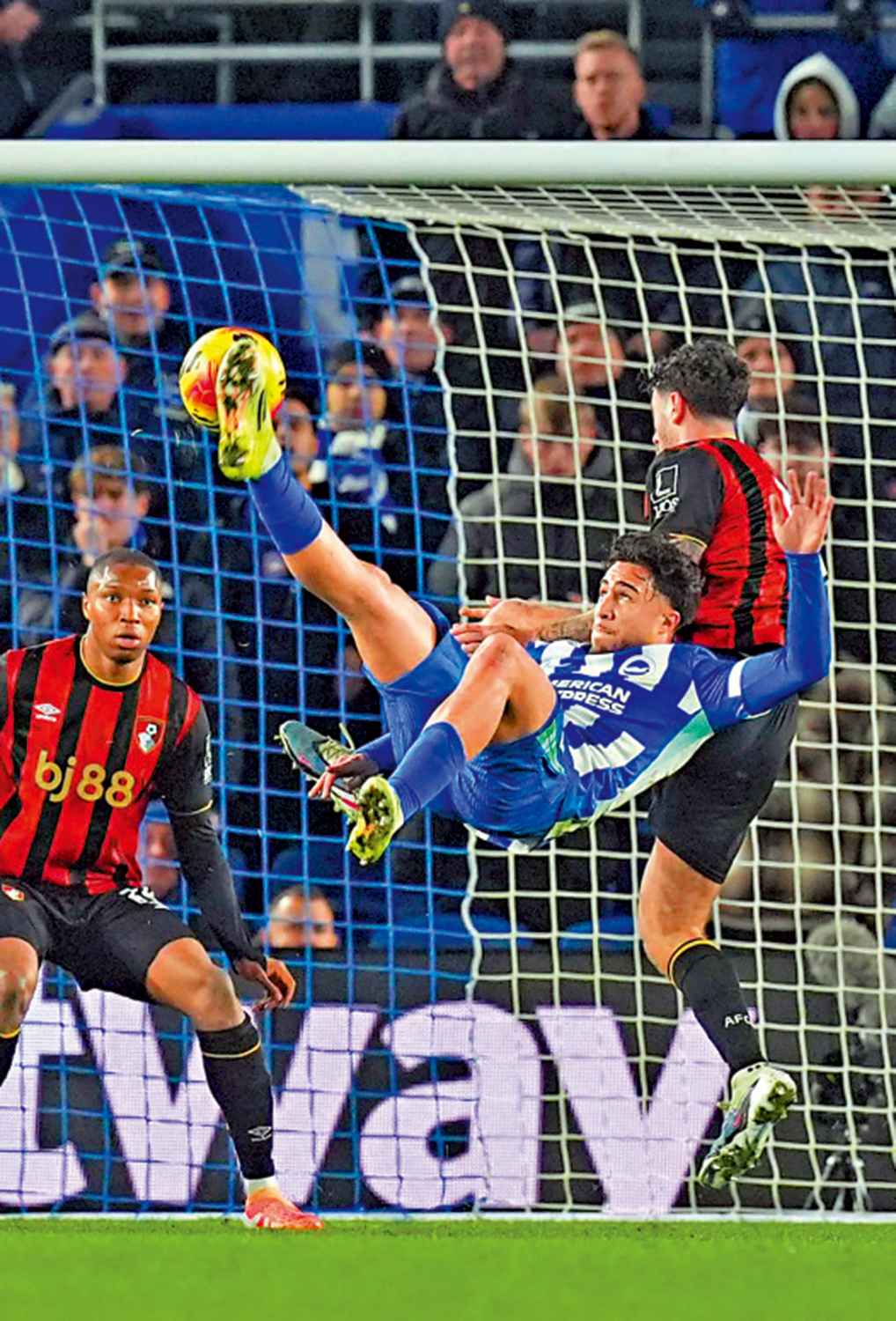 英超20日上演白禮頓主場對般尼茅夫,客軍上半場中段博得12碼,馬科斯達華尼亞32分鐘一蹴而就,助般尼茅夫領先1:0。補時1分鐘,白禮頓18歲前鋒高斯杜拉斯接應傳中心口控高後施展倒掛把皮球射入網成1:1完場。由於上輪贏熱刺的般尼茅夫失分,目前竟然沒有任何一支英超球隊處於連勝狀態,可見英超競爭激烈。
